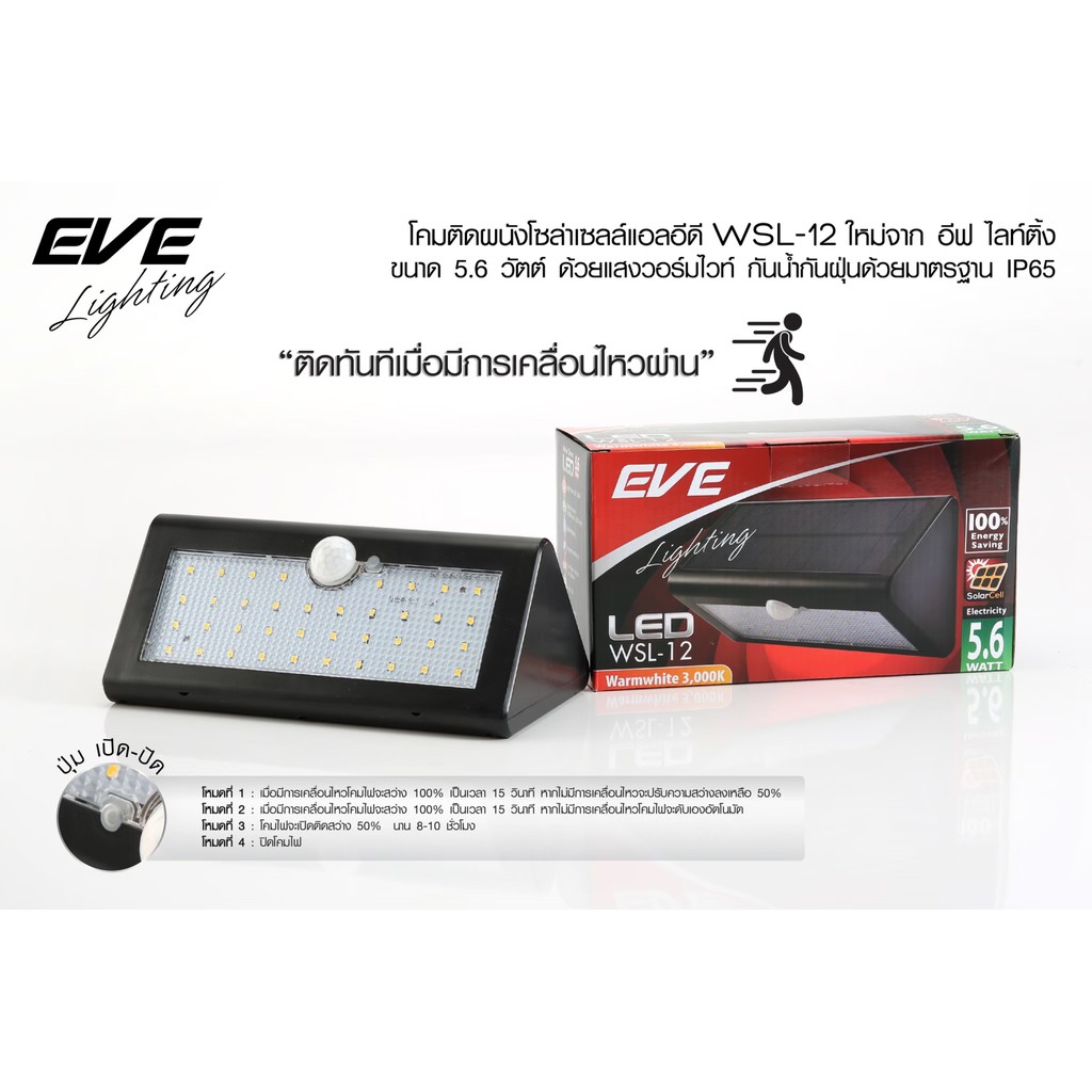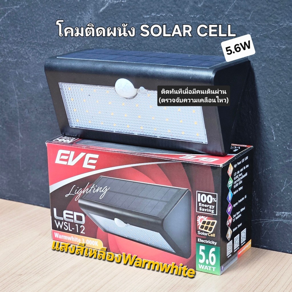 EVE โคมไฟติดผนัง โซล่าเซลล์ แอลอีดี LED รุ่น WSL-12 ขนาด 5.6W แสงเหลือง (ซื้อเยอะลดเพิ่ม)