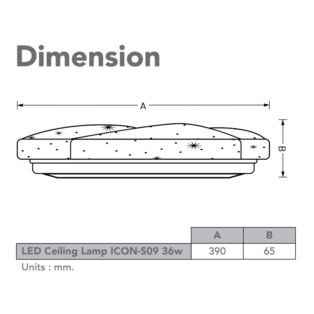 EVE (ลดล้างสต๊อก) โคมไฟติดเพดาน เปลี่ยนสีได้ 3 สี แอลอีดี LED รุ่น ICON-S09 ขนาด 36W 39x6.5cm.