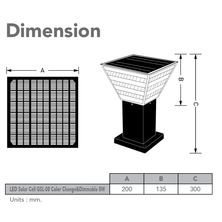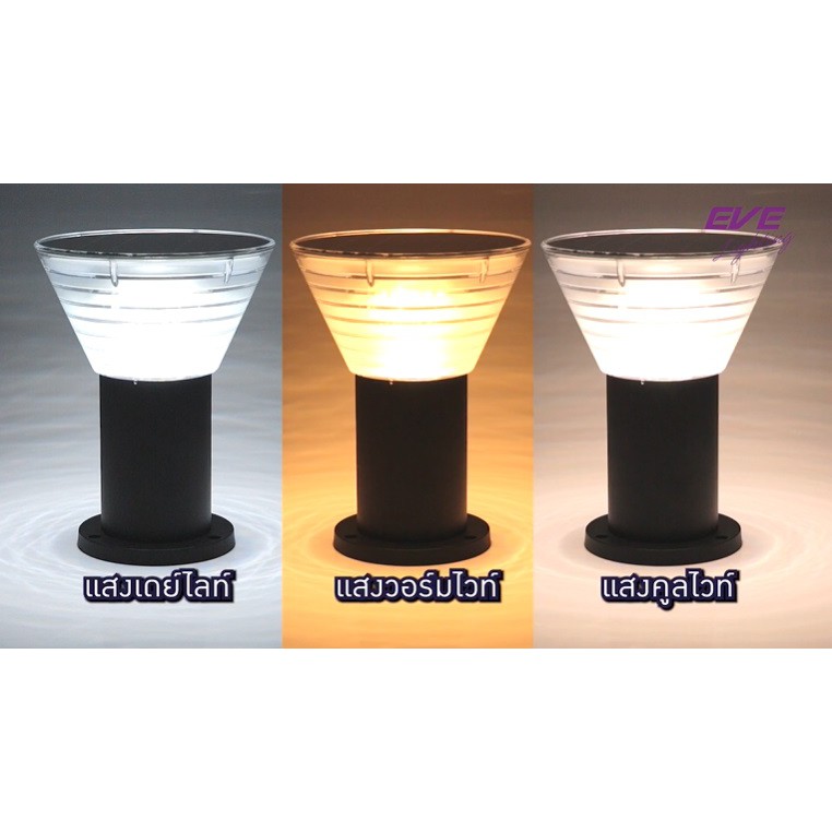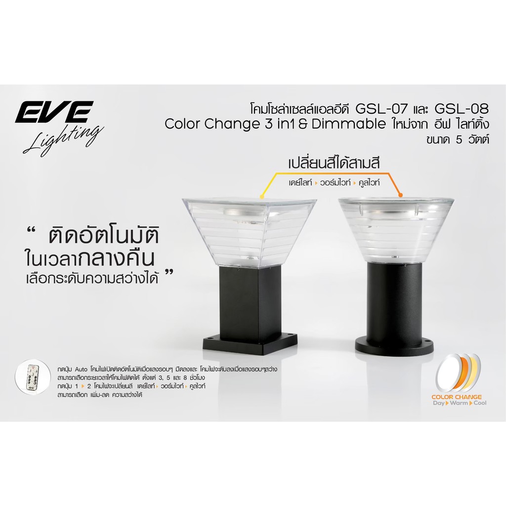 EVE โคมไฟหัวเสา โซล่าเซลล์ แอลอีดี เปลี่ยนสีได้ รุ่น GSL-07 และ 08 ( ไม่เอากล่อง ลดเพิ่ม 10% )