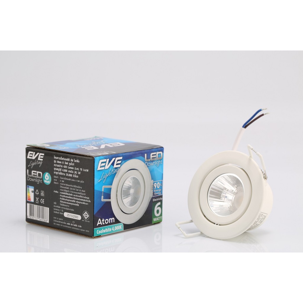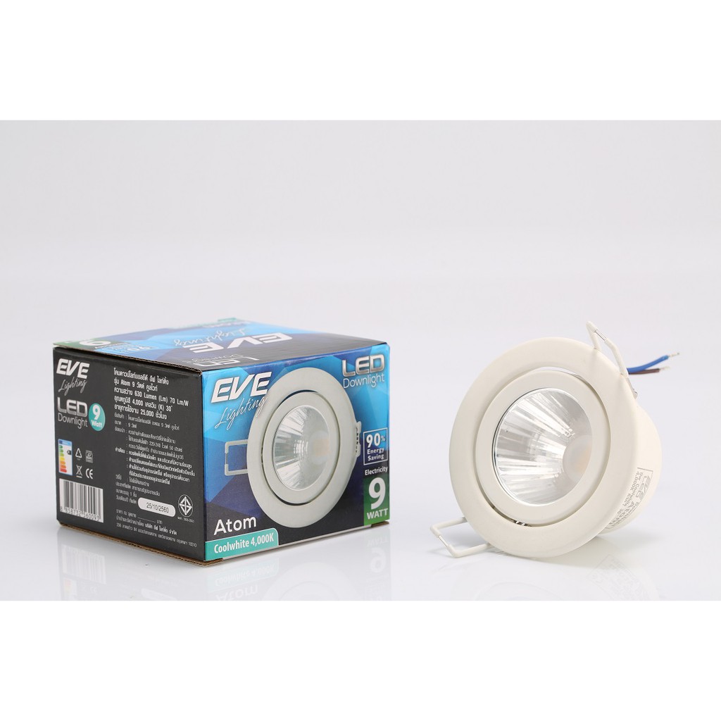EVE โคมไฟ ดาวน์ไลท์ โคมฝังฝ้า ปรับองศา แอลอีดี LED โคมติดเพดาน รุ่น Atom 3W 6W 9W 12W แสงขาวนวล คูลไวท์ 4000K