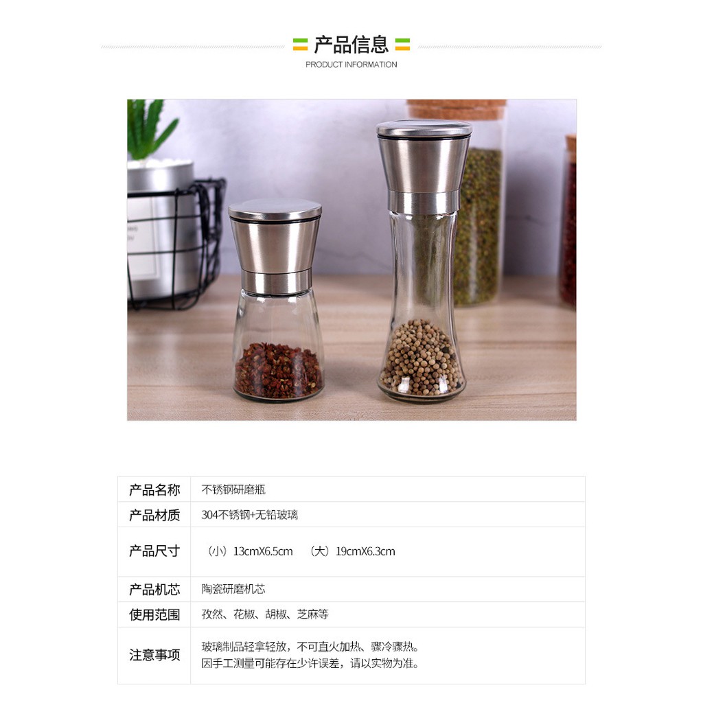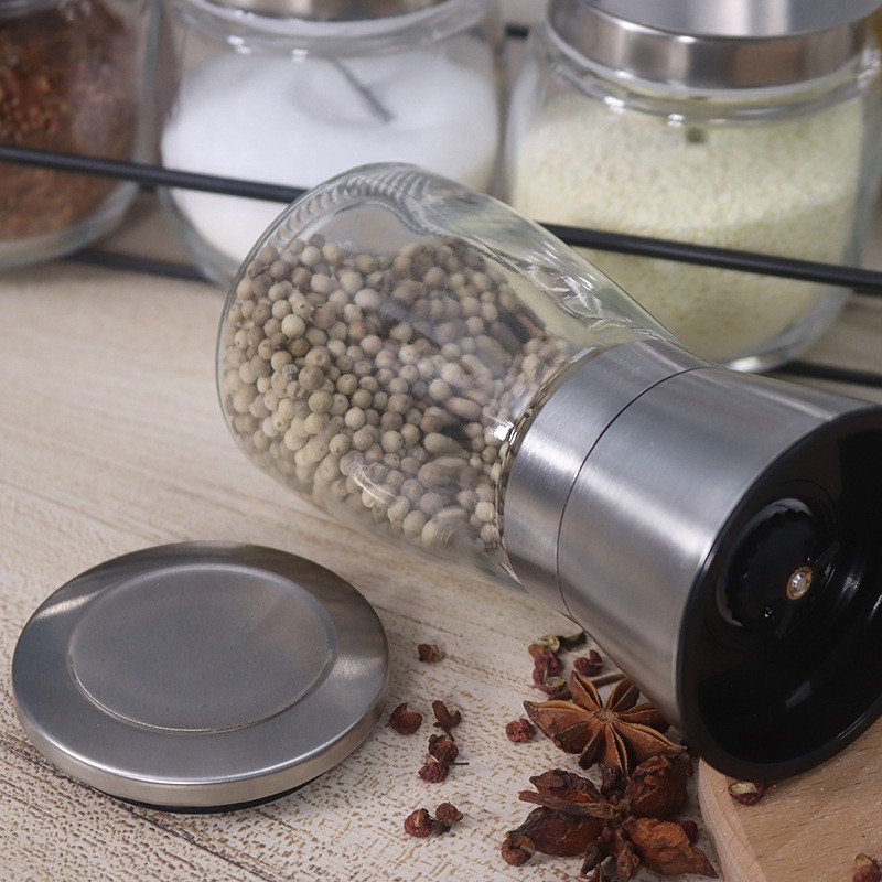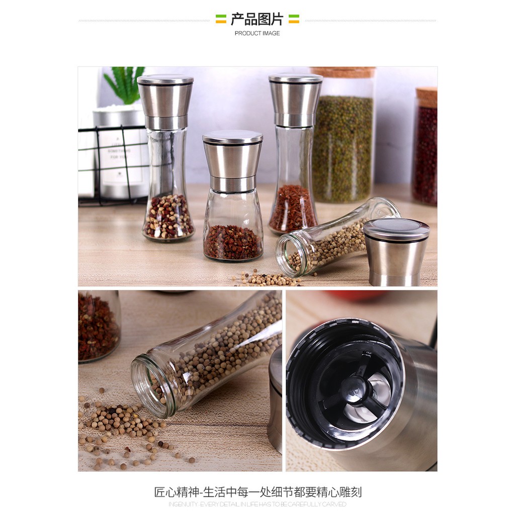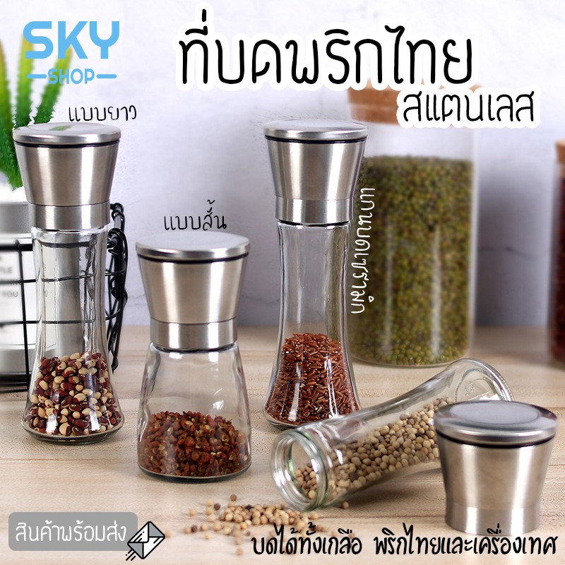 SKY ที่บดพริกไทย ขวดบดพริกไทย เกลือ เครื่องเทศ ขวดแก้วอย่างดี ฝาสแตนเลส พร้อมฝาปิด ไม่เป็นสนิม ไร้สารตะกั่ว