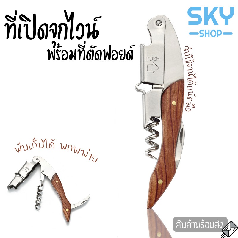 SKY ที่เปิดขวดไวน์ ที่เปิดจุกไวน์ ที่เปิดขวดเอนกประสงค์ มีที่ตัดฟอยล์ในตัว คุณภาพดี พกพาง่าย