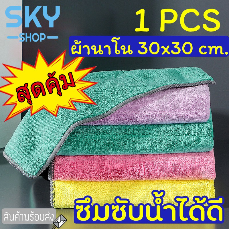 SKY ผ้าเช็ดมือ เช็ดโต๊ะ เช็ดจาน เช็ดรถ ขนาด30*30cm อเนกประสงค์ ผลิตจากผ้านาโน