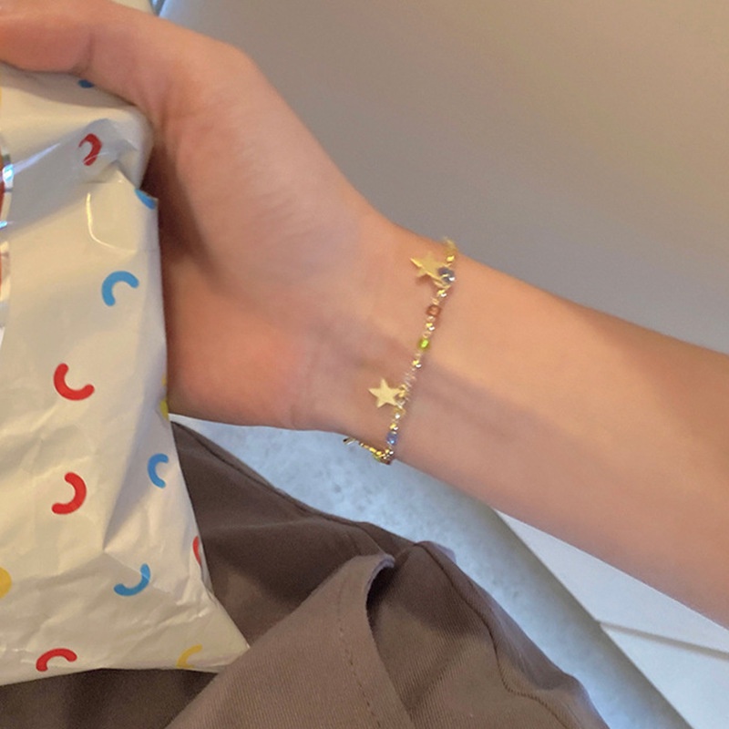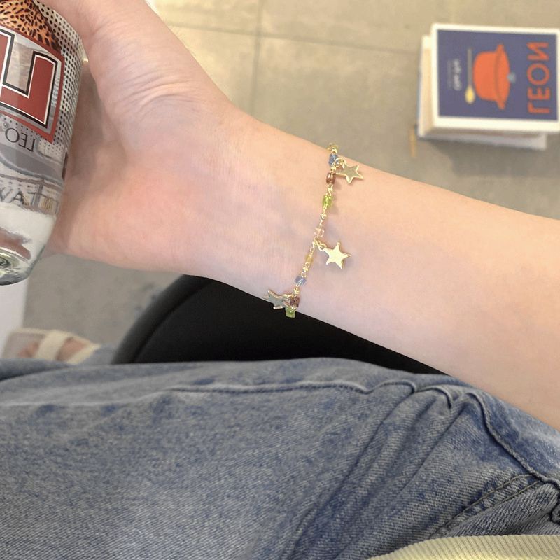 เครื่องประดับ สร้อยข้อมือ จี้เรซิ่น รูปดาว ประดับเพชรเทียม สีสันสดใส แฟชั่นสําหรับผู้หญิง