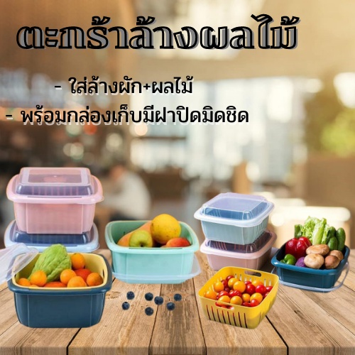 TY- ตะกร้าล้างผลไม้ [03] กล่อง 2in1 ตะกร้ามีทีกรอง ตะกร้าล้างผัก รุ่น1627-1629