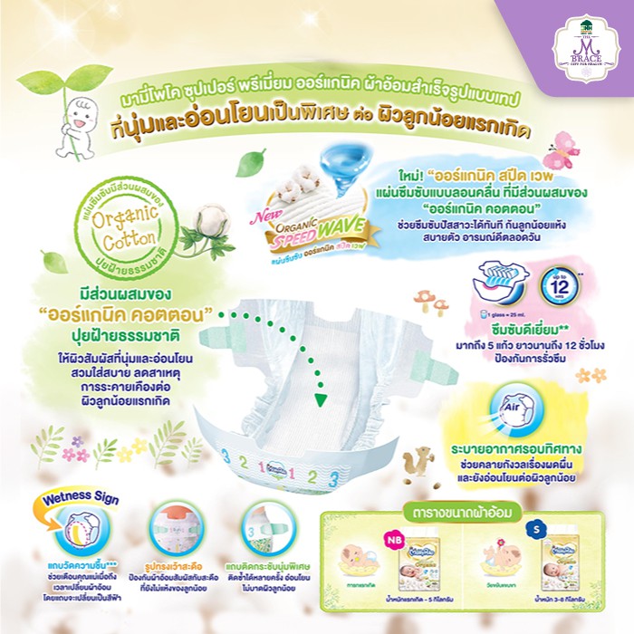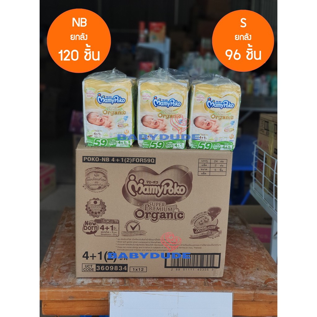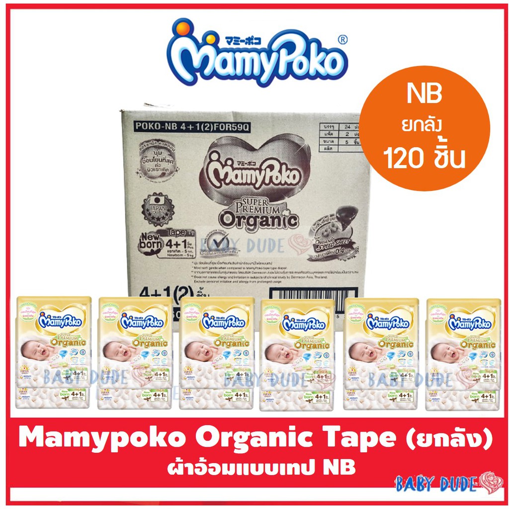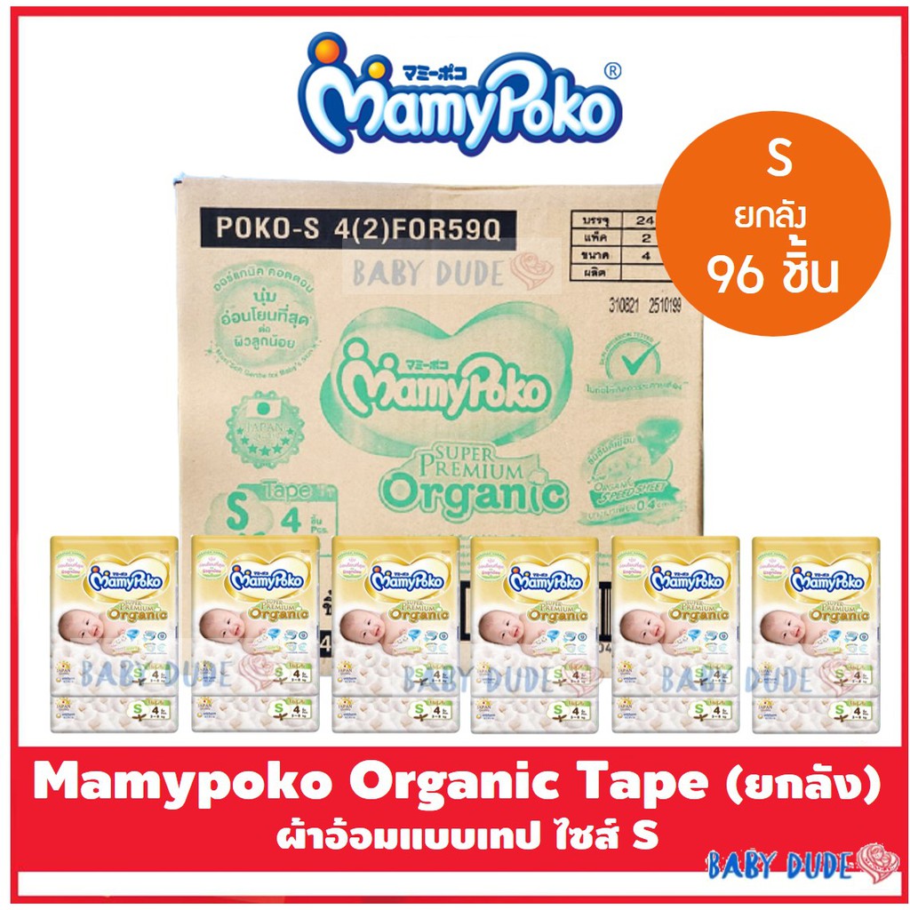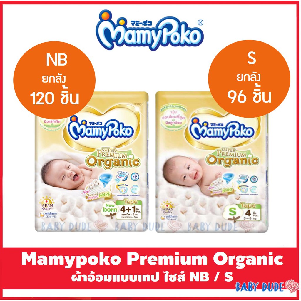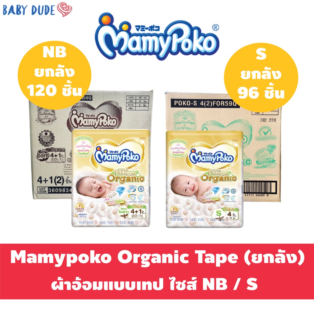 Mamypoko Organic ออแกนิค SuperPremium Newborn แรกเกิด NB 120 ชิ้น( รุ่นเทป ) เทป S 96 ชิ้น ยกลัง