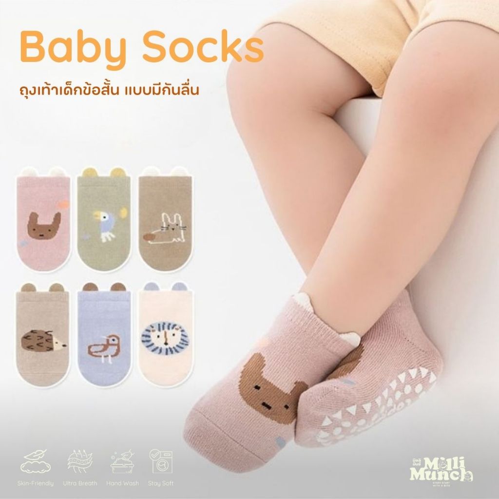 Millimunch ถุงเท้าเด็กกันลื่น ข้อสั้น เนื้อผ้านุ่ม ใส่ได้ทั้งช/ญ S / M