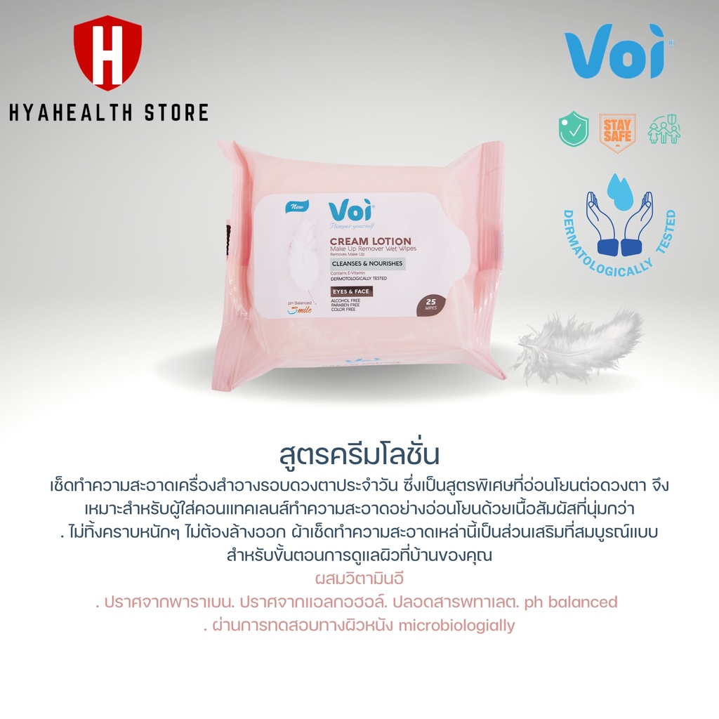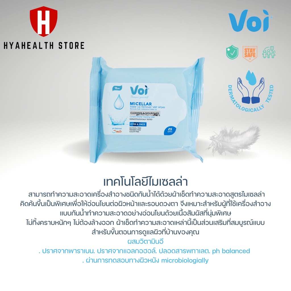 Voi makeup remover wipes cleansing ทิชชู่เปียก คลีนซิ่ง เช็ดเครื่องสำอางธรรมดาและ เครื่องสำอางกันน้ำ