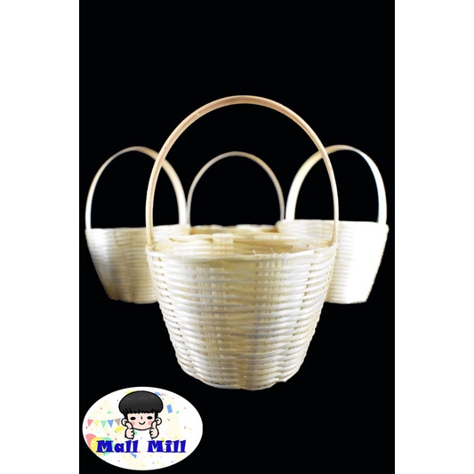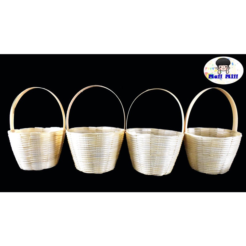 ตะกร้าสาน ขาวล้วน ขนาด 2.5 นิ้ว ไม้ไผ่ ตะกร้า กระเช้า ใส่อาหาร อุปกรณ ขนมไทย แต่งร้าน