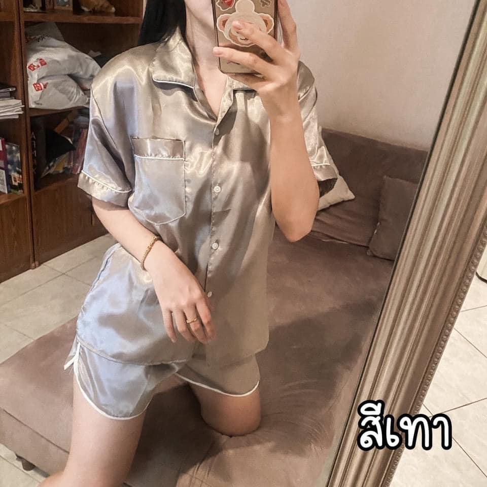 ชุดนอนซาติน แขนสั้นขาเว้าใส่สบาย