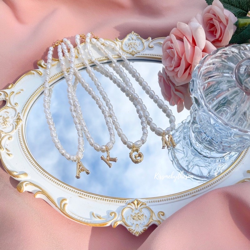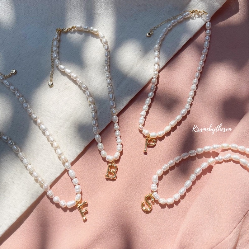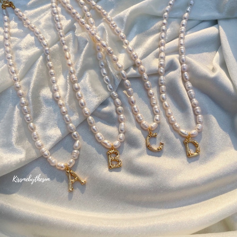 Kissmebythesun - Pearly pure Alphabet | สร้อยคอมุกน้ำจืดจี้ตัวอักษร ชุบทองคำขาว