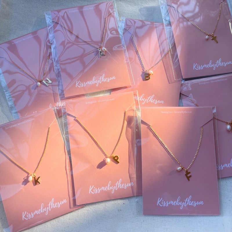 Kissmebythesun - Alpha Pearl | สร้อยคอตัวอักษรชาร์มมุกน้ำจืด ชุบทองคำขาว
