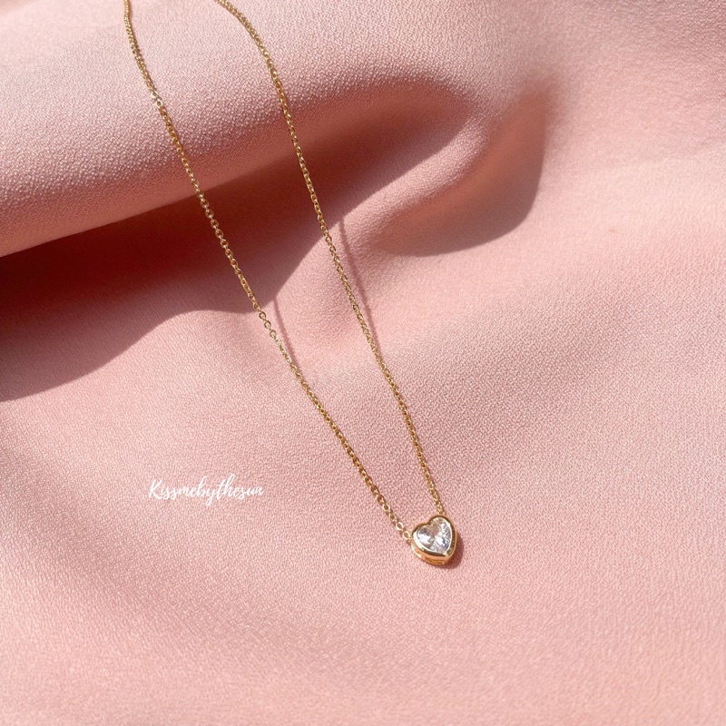 Kissmebythesun - Je t’aime necklace | สร้อยคอจี้หัวใจ ชุบทองคำขาว 14k