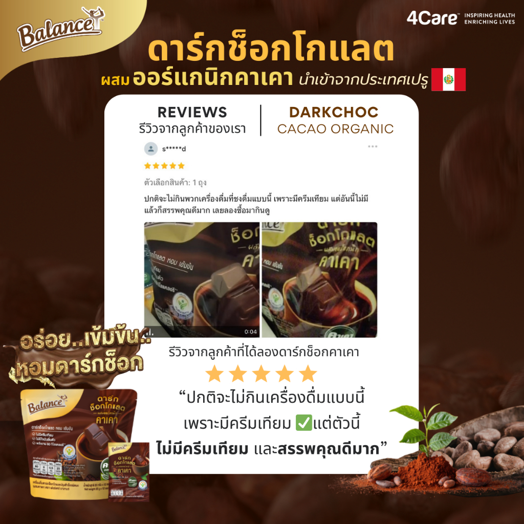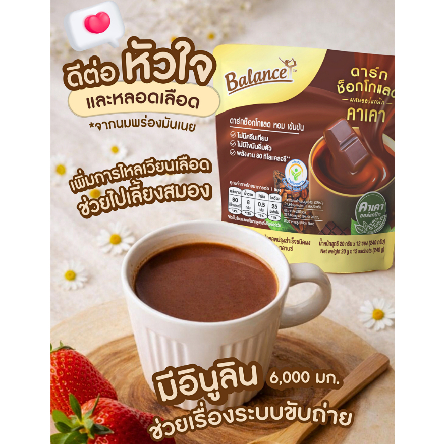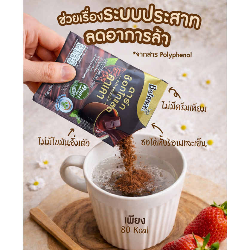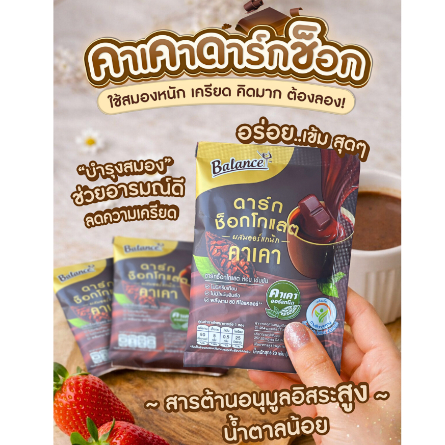 [ซื้อ 3 ถุงรับฟรี 5 ซอง] ดาร์กช็อกเข้มข้น อร่อยมาก! [1 ถุง 12 ซอง] Balance ดาร์กช็อกคาเคาออร์แกนิคนำเข้าจากเปรู หวานน้อย
