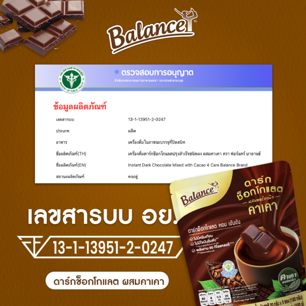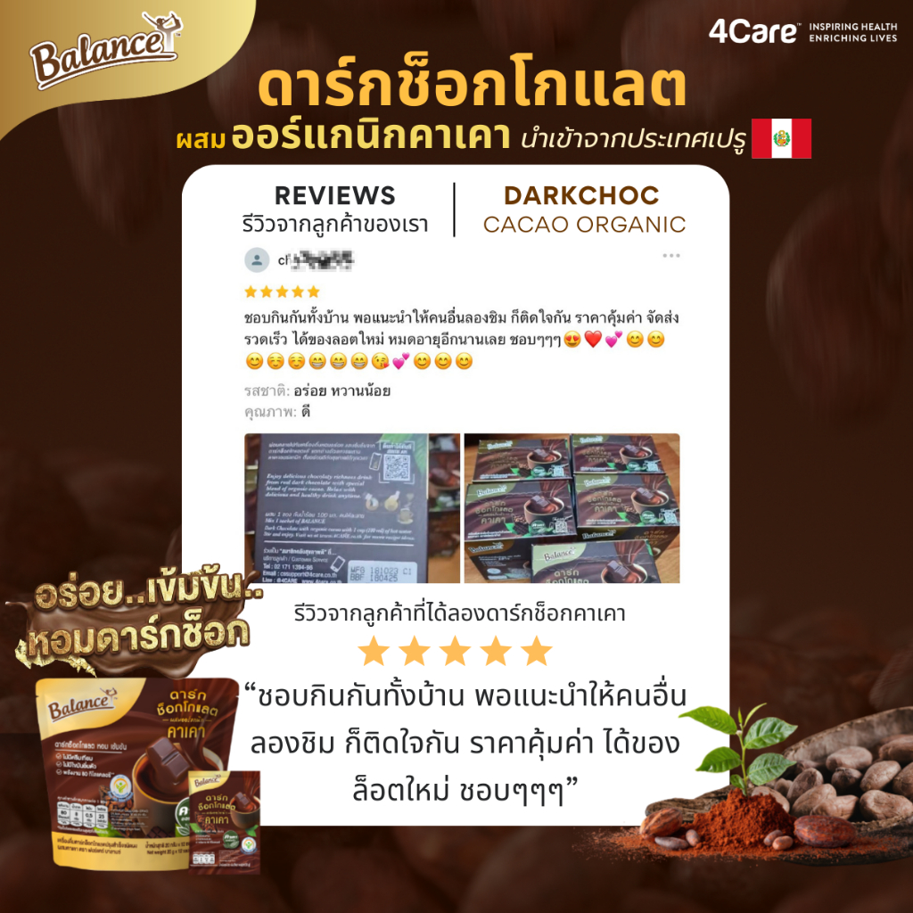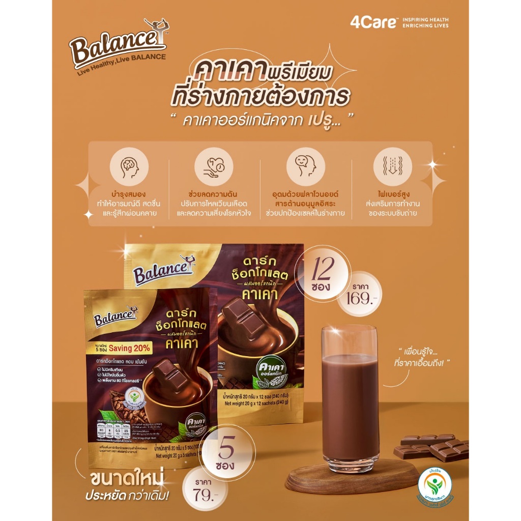 [ซื้อ 3 ถุงรับฟรี 5 ซอง] ดาร์กช็อกเข้มข้น อร่อยมาก! [1 ถุง 12 ซอง] Balance ดาร์กช็อกคาเคาออร์แกนิคนำเข้าจากเปรู หวานน้อย
