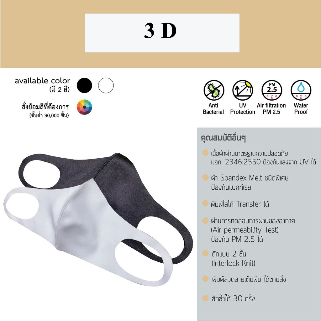 ผ้า Spandex Melt ชนิดพิเศษ ป้องกันแบคทีเรีย ลายพื้นสีขาว และดำ สามารถออกใบกำกับภาษี