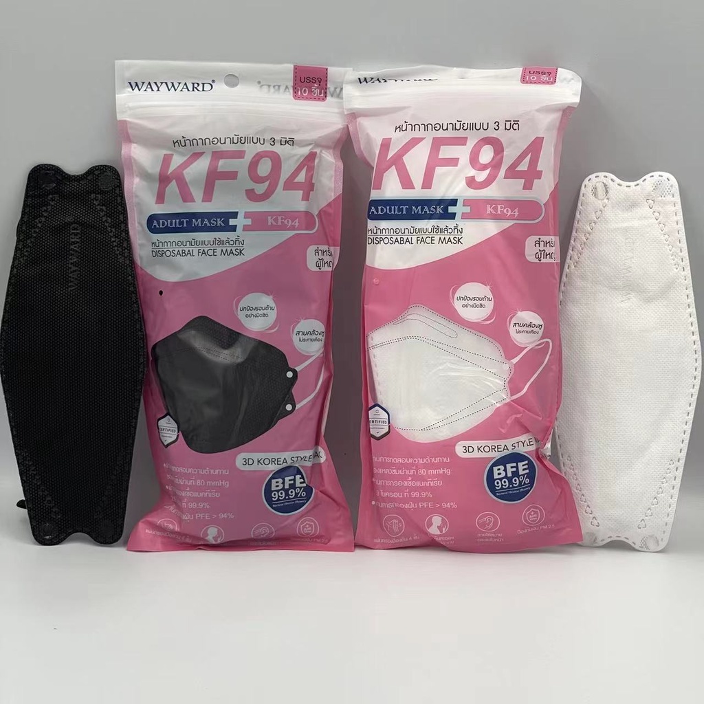 Mask KF94 ทรง 3D หน้ากากอนามัยเกาหลีแผ่นกรอง 3ชั้น สำหรับผู้ใหญ่ (แพ็ค10ชิ้น)