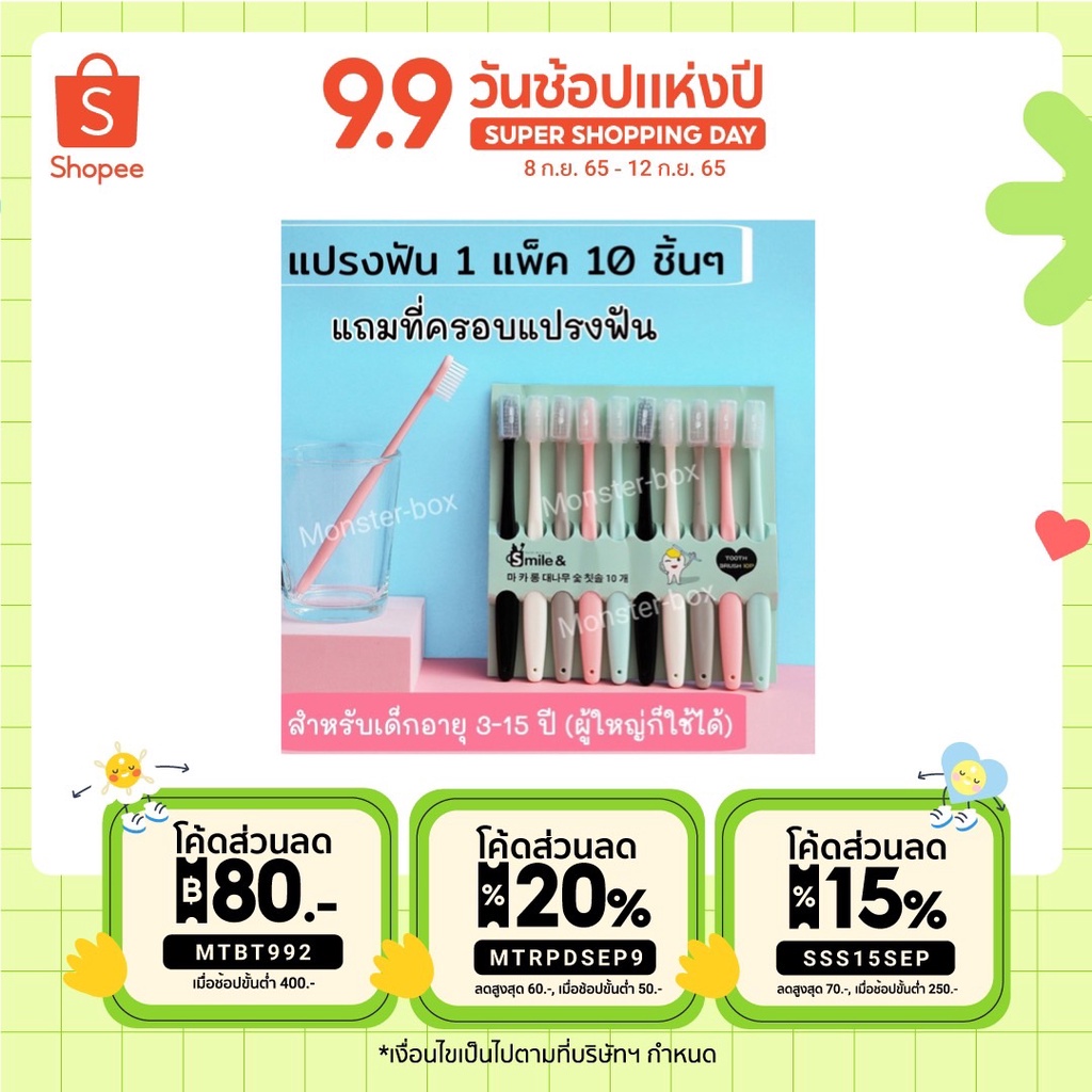 [ใส่โค้ดMTCHECK99ลดเพิ่ม20%] Monster box ส่งจากไทย แปรงสีฟัน เด็ก3ขวบขึ้นไป 1 แพ็ค10 ชิ้น แปรงฟัน อุปกรณ์แปรงฟัน