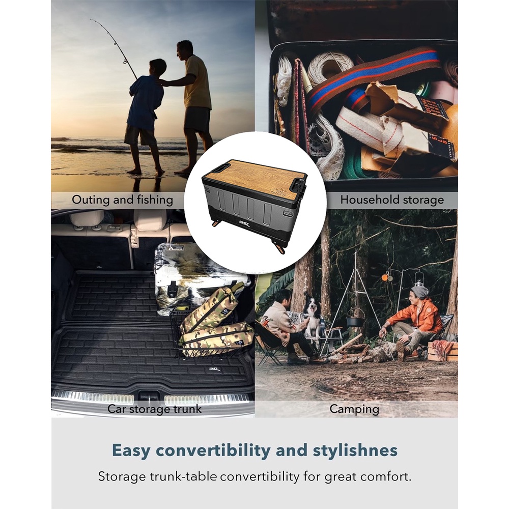 กล่องแคมป์ปิ้ง กล่องโต๊ะ กล่องใส่ของ 3D three-in-one sitting folding storage camping box (60L) Function:Table
