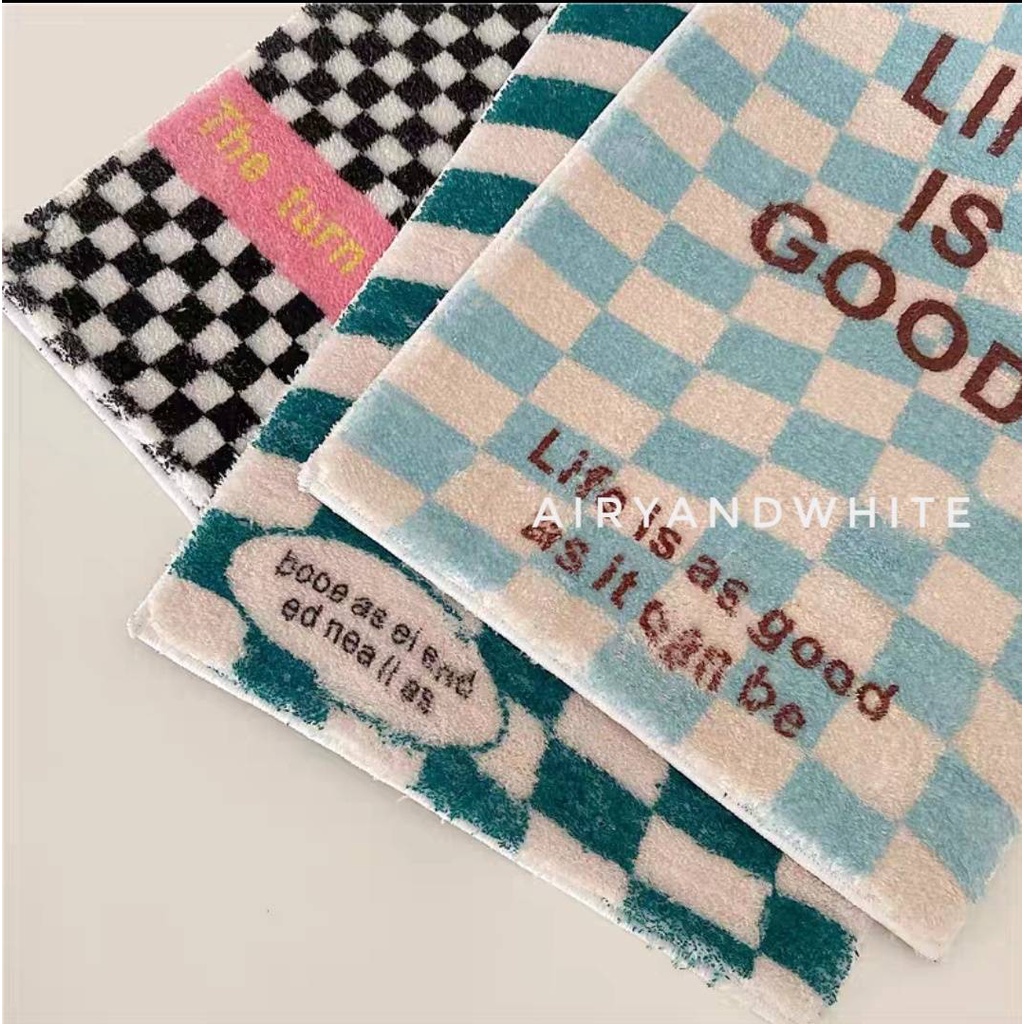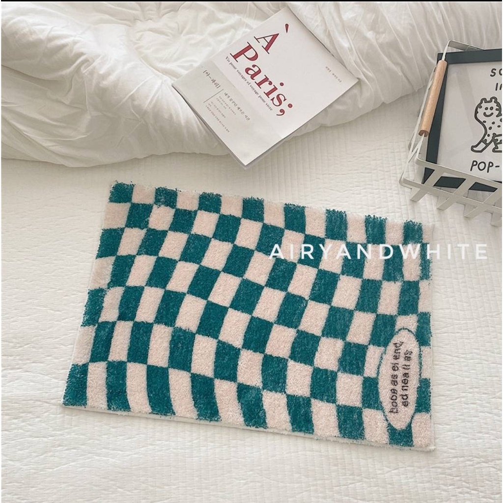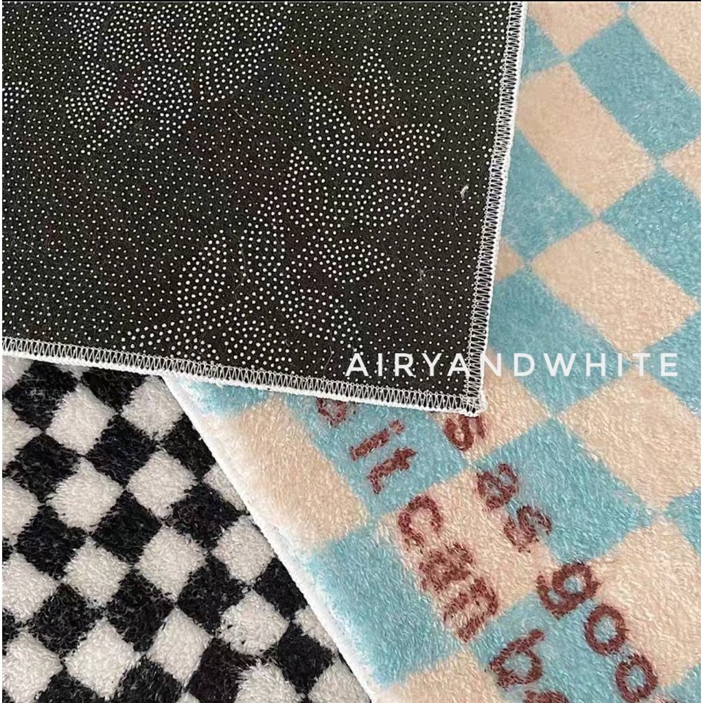 🔥ส่งด่วน1-2วัน🔥 พรมลายหมากรุก ลายตาราง พรมลายสก๊อต ขนนุ่ม มีกันลื่น พรมแต่งห้อง