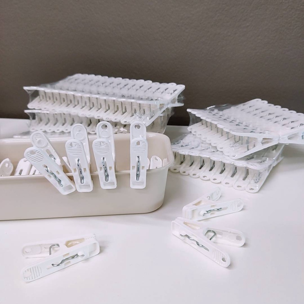ที่หนีบผ้า กิ๊บหนีบผ้า ไม้หนีบผ้า สีขาว สินค้าผลิตจากพลาสติกคุณภาพ โทนขาว #กิ๊บหนีบผ้า