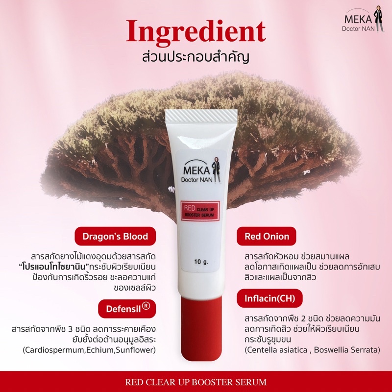 เรดเจล ฝาแดง รอยดำ รอยแดง รอยแผล หลังสิวหาย สูตรเมก้าด็อกเตอร์แนน ดราก้อนบลัด Dragon’s Blood Tree