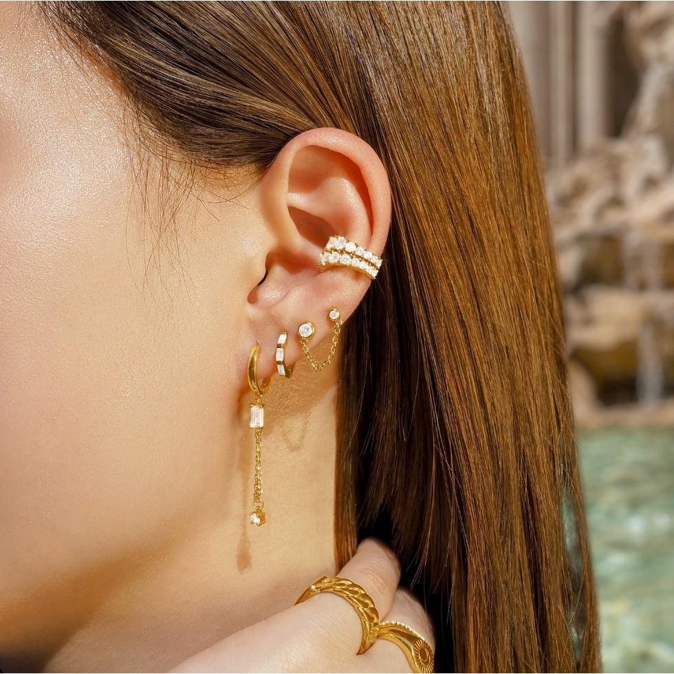 SHEPENDENCE ต่างหูก้าน LUXE Double Link Chain Bezel ประดับคริสตัลโซ่ สำหรับคนเจาะหู 2 รู