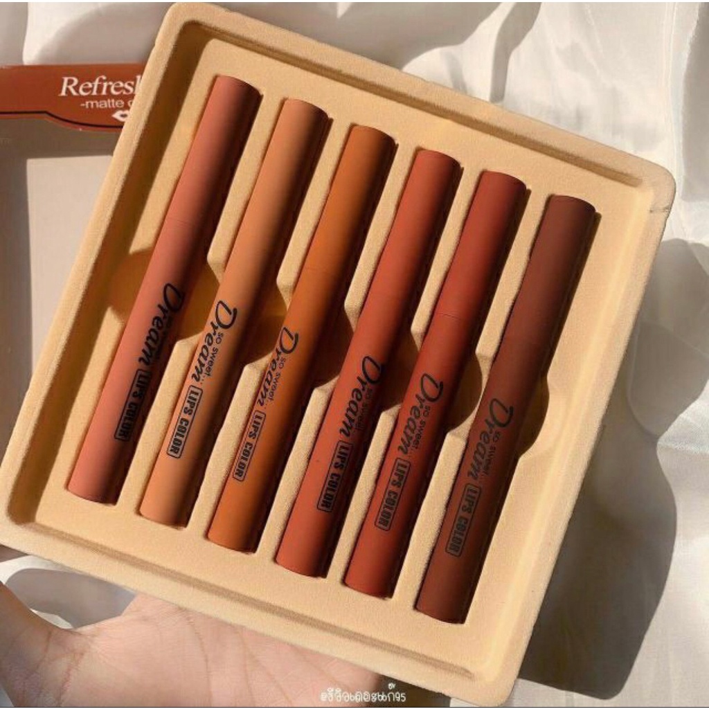 9091B ลิปเซ็ต 6 ชิ้น ขายดี lipstick ราคาถูกที่สุด โทนส้มอิฐ โทนแดงก่ำ ลิป ลิปเนือแมท