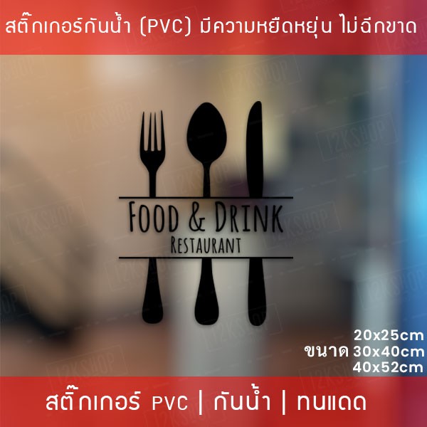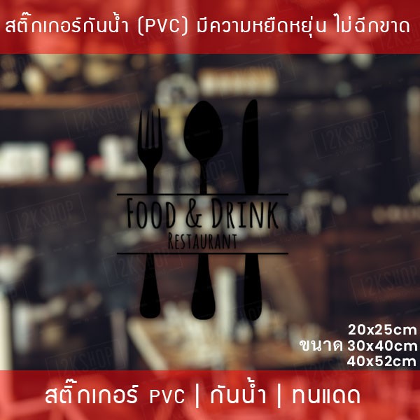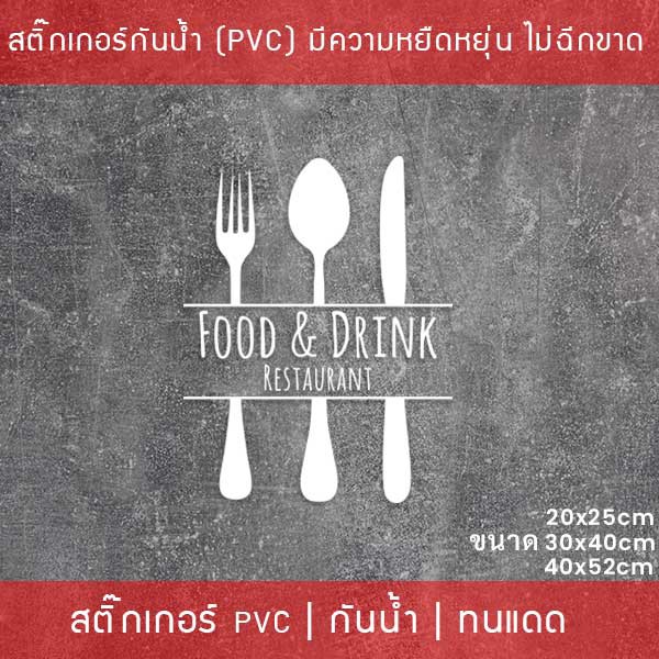 สัญลักษณ์ไอคอนสติ๊กเกอร์ตกแต่งร้านอาหาร Food and Drink สติ๊กเกอร์ติดกระจกร้านอาหาร เป็นสติ๊กเกอร์ pvc โดนน้ำได้
