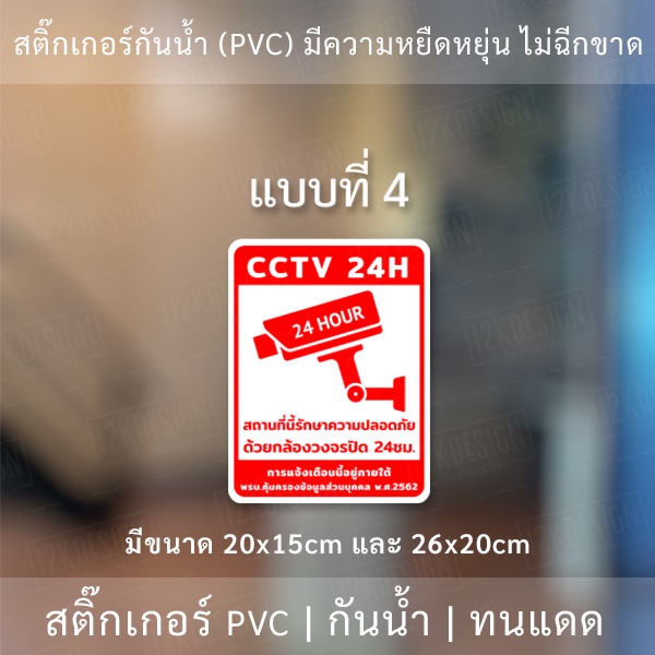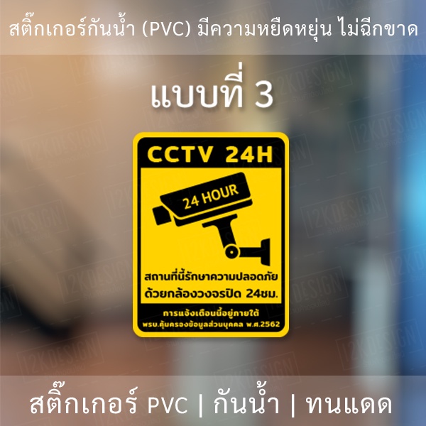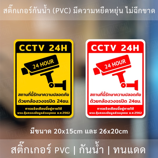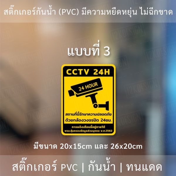 สติกเกอร์กล้องวงจรปิด 24ชม. ป้ายเตือนมีกล้องวงจรปิด เป็นสติกเกอร์พีวีซี พิมพ์ด้วยหมึกยูวีกันน้ำ หมึกพิมพ์เกรด A