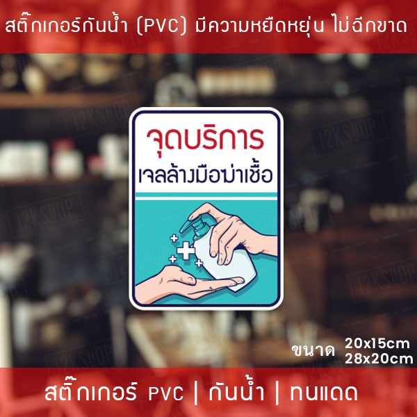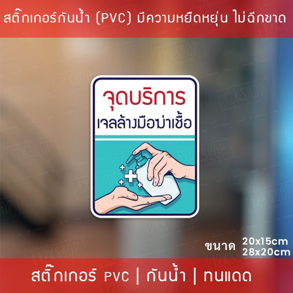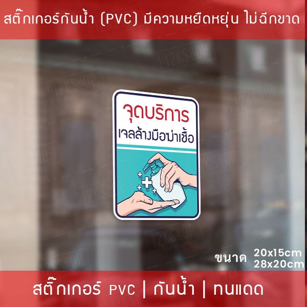 ป้ายสติ๊กเกอร์ข้อความ “จุดบริการ เจลล้างมือฆ่าเชื้อ” สติ๊กเกอร์จุดบริการเจลแอลกอฮอล์