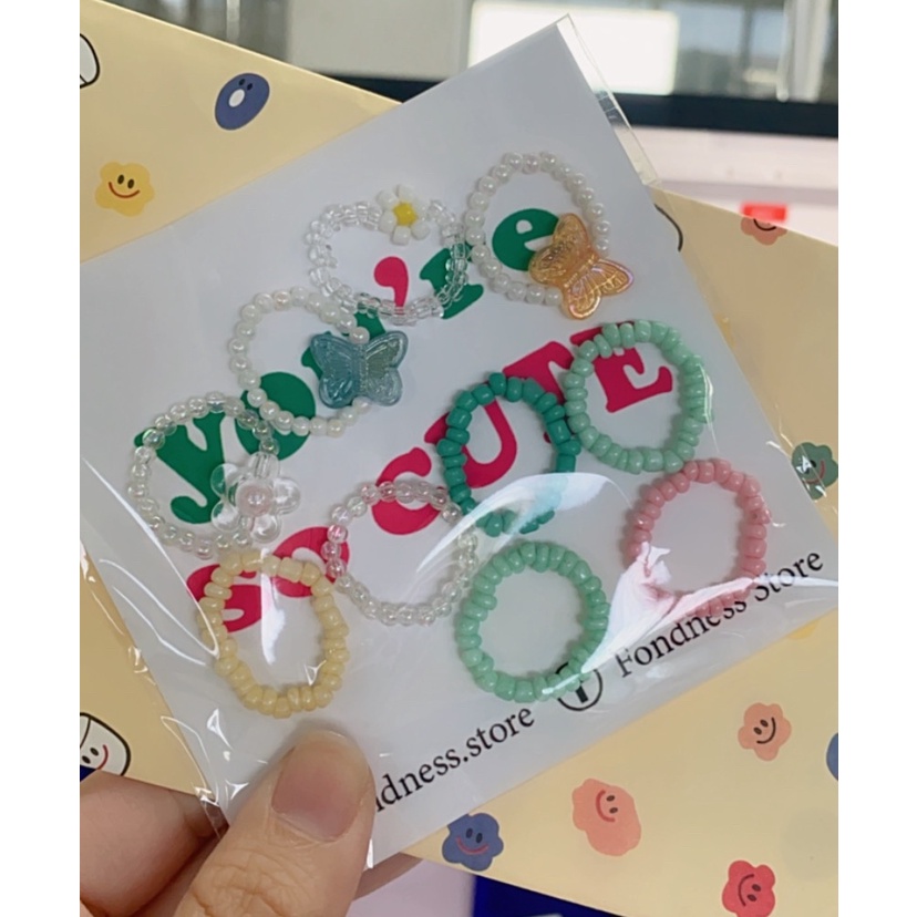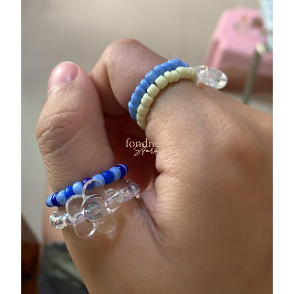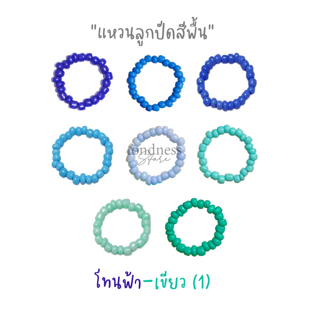 แหวนลูกปัด เอ็นยืด สีพื้น โทนฟ้า-เขียว (1) A - H [Fondness Store]