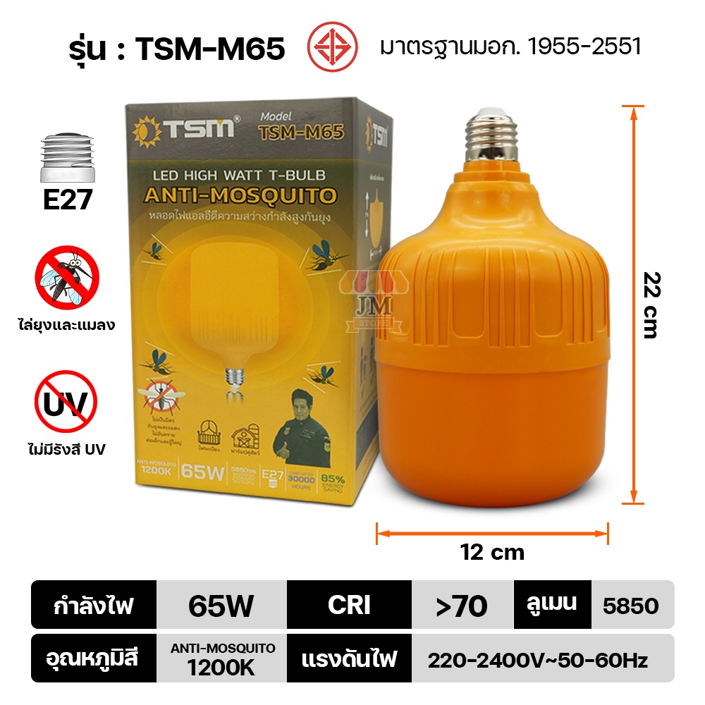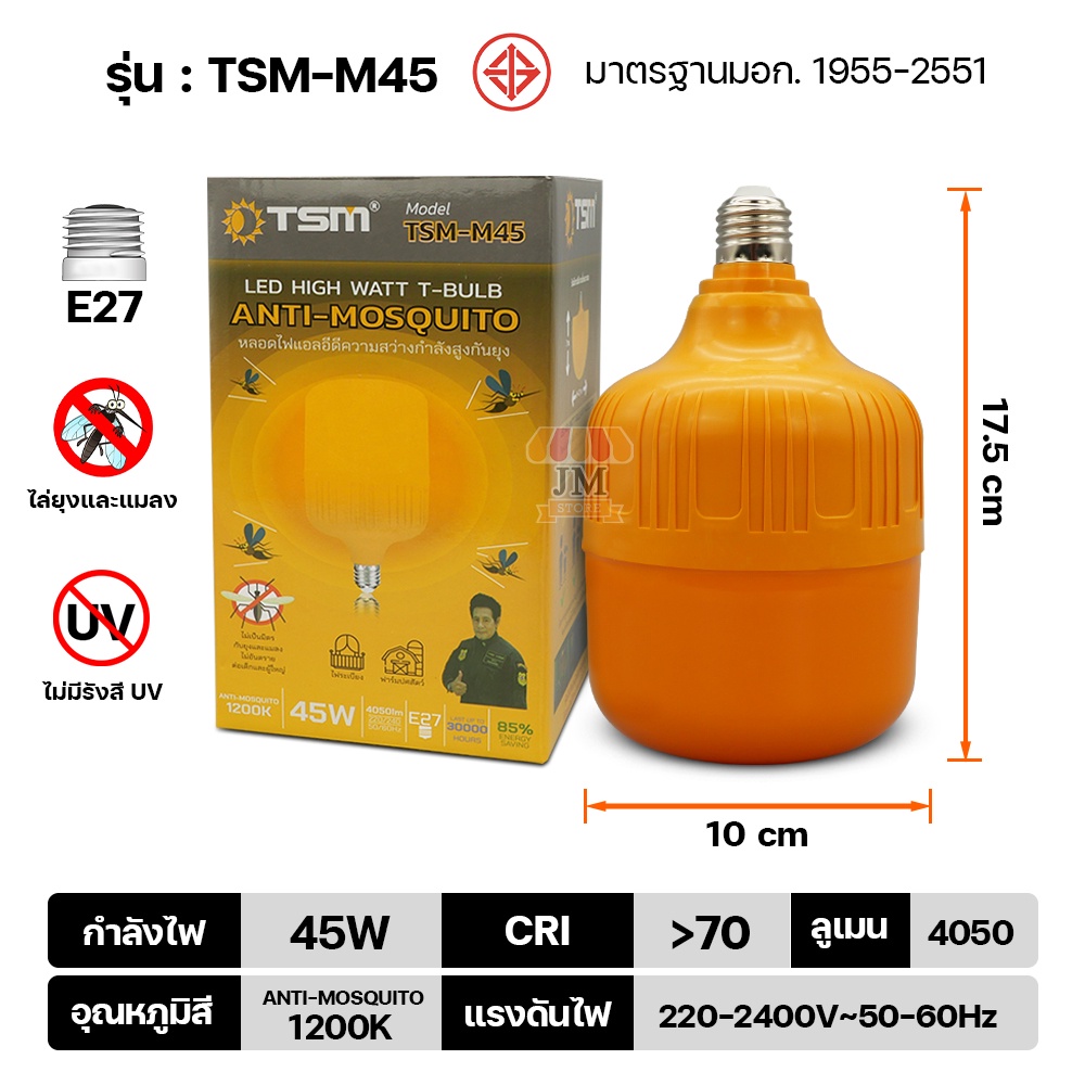 หลอดไฟไ ล่ยุงและแมลง แสงสีส้ม BULB LED Mosquito ไฟคอกวัว เลี้ยงสัตว์ ขั้ว E27 TSM-M25W,45W,65W HS-35W