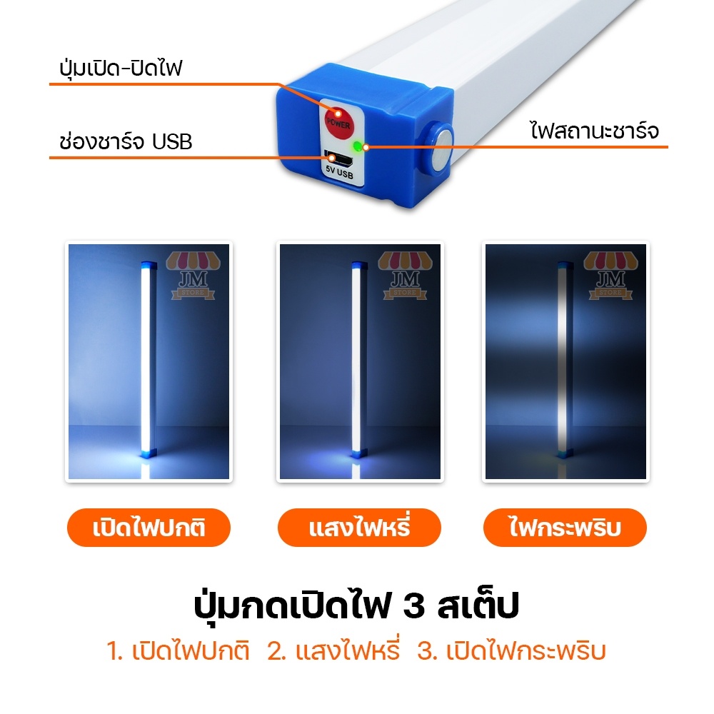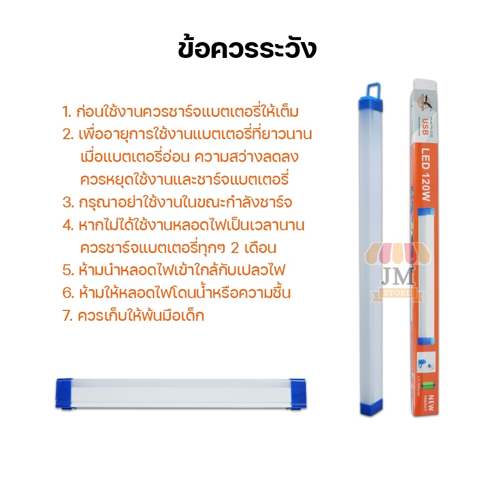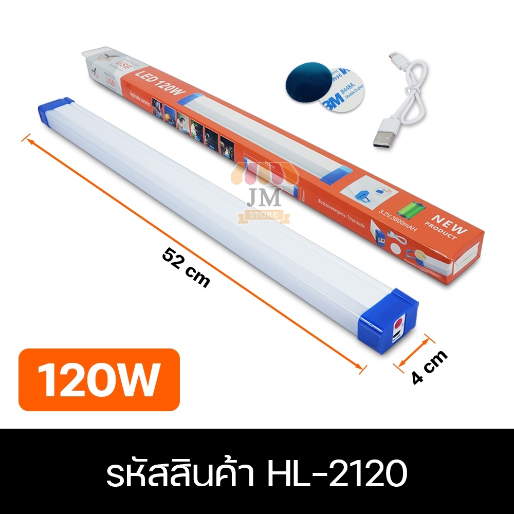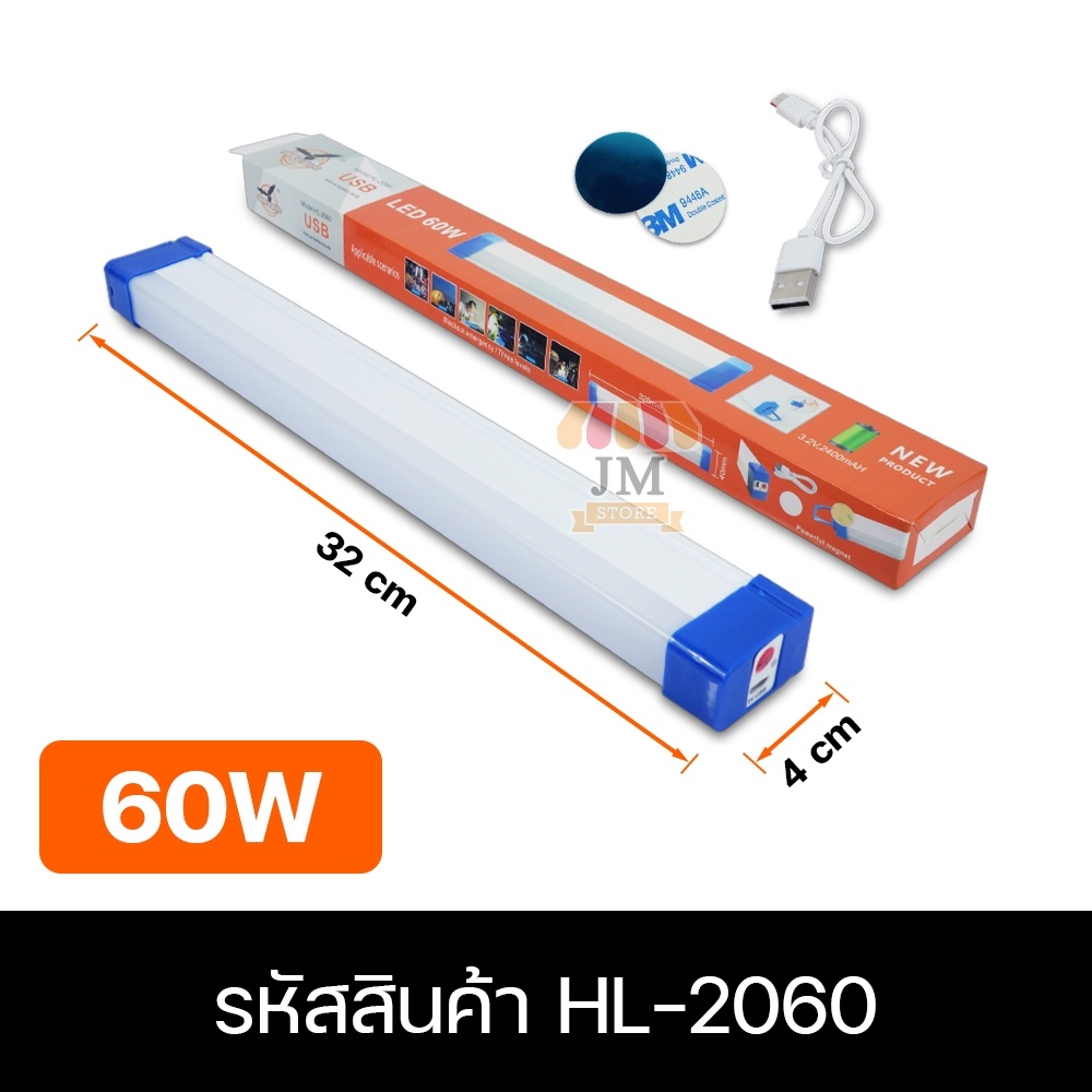 หลอดไฟไ ร้สาย LED ไฟแท่ง 60W,120W พกพาสะดวก ปรับ 3 โหมด HL-2060,2120 ไฟกระพริบ ชาร์จแบตได้ USB แบตอึด สว่างมาก แสงขาว