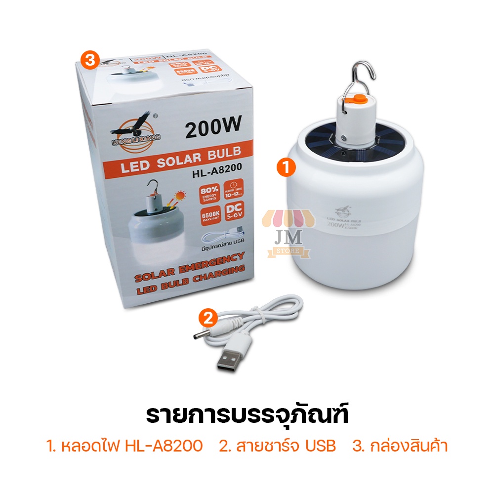 หลอดไฟต ุ้มไร้สาย LED พลังงานโซลาเซลล์ ไฟฉุกเฉิน ชาร์จแบตได้ ขนาดพกพา เข้าป่า แคมป์ปิ้ง BULB HL-28400