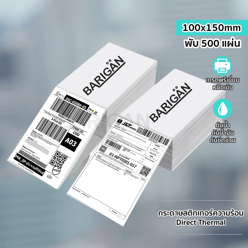 BARIGAN-(100x150mm500แผ่น) กระดาษความร้อนสติ๊กเกอร์ Thermal Sticker Label สำหรับเครื่องปริ้นความร้อน