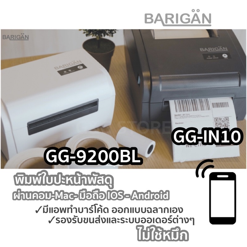 BARIGAN เครื่องพิมพ์ฉลาก รุ่น GG-9200BL/GG-IN10/BG-IN20 ผ่านมือถือและคอมUSB/BT/wifi ใบปะหน้าพัสดุ