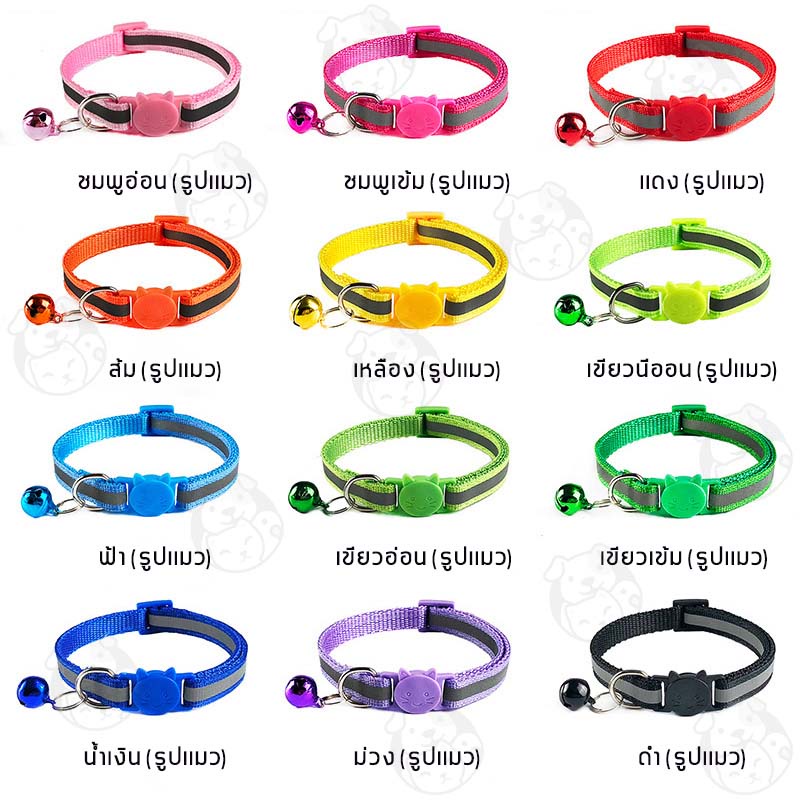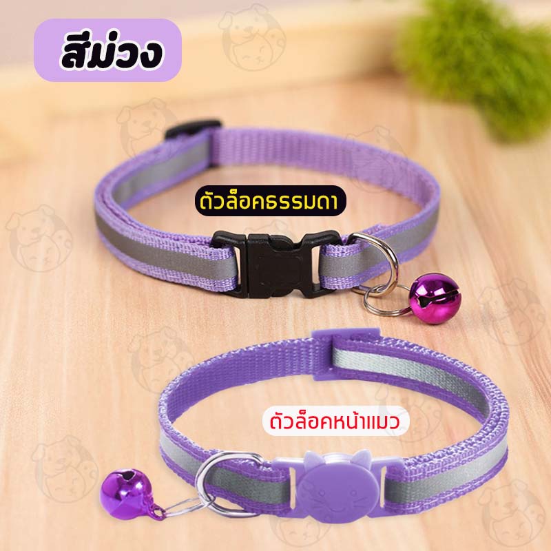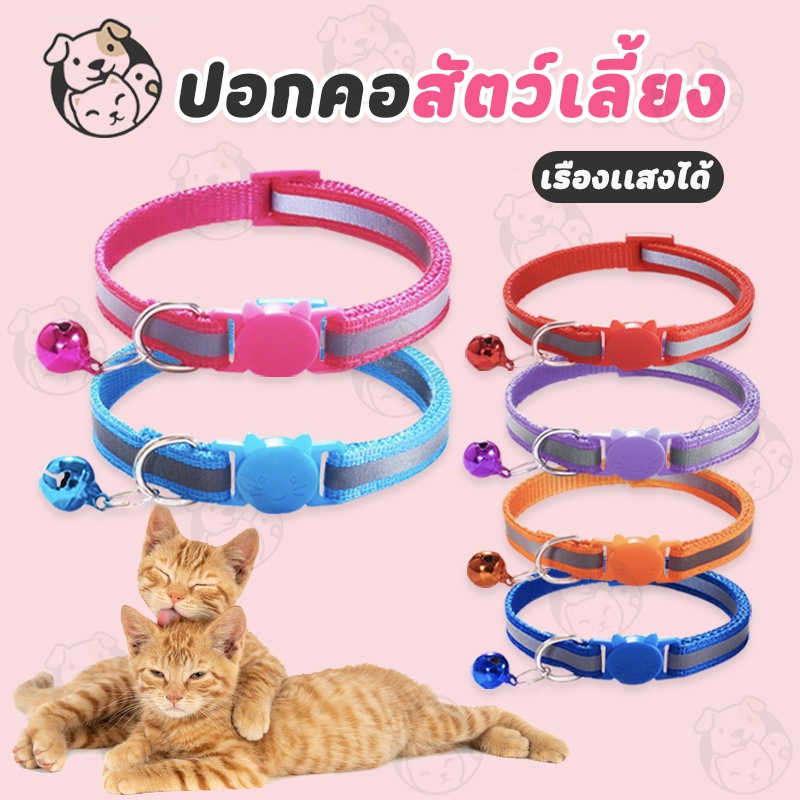 ปลอกคอ ปลอกคอแมว ตัวล็อคธรรมดา ตัวล็อคนิรภัย มีแถบสะท้อนแสง สีสันสดใส พร้อมส่ง C