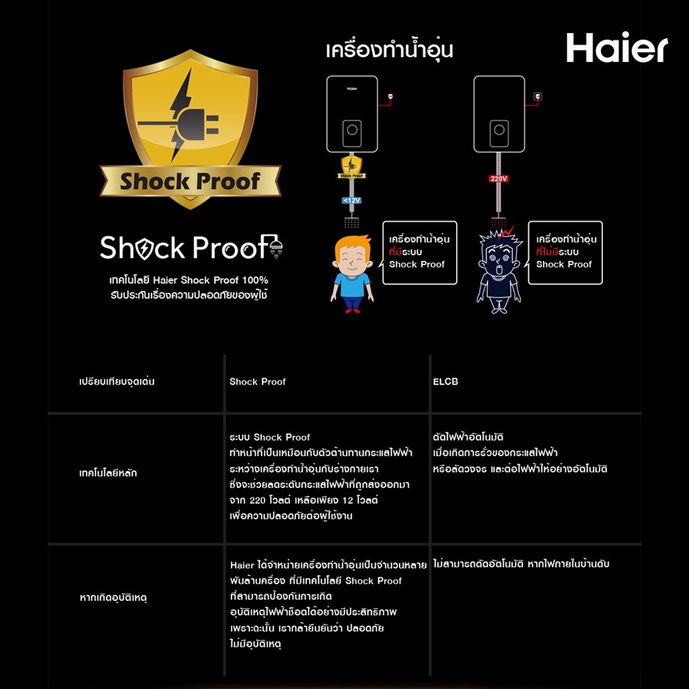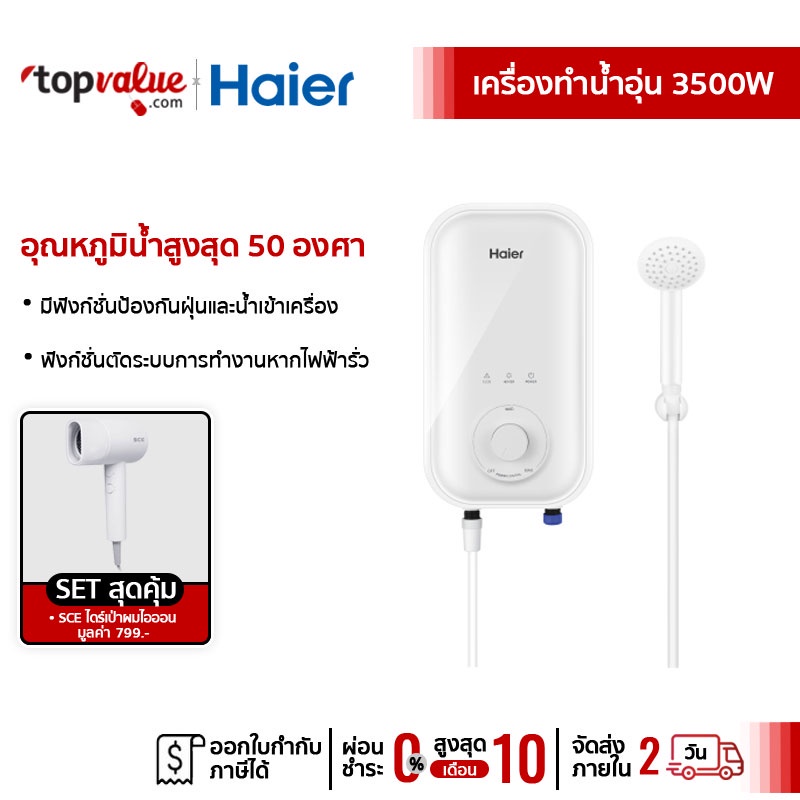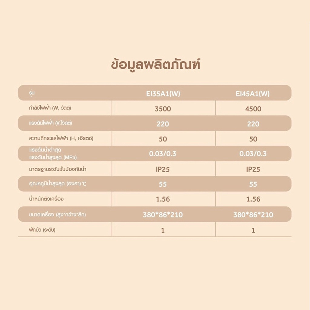 HAIER เครื่องทำน้ำอุ่น 3500W, 4500W รุ่น EI35A1,EI45A1,EI35L1 - รับประกันตัวเครื่อง 2 ปี