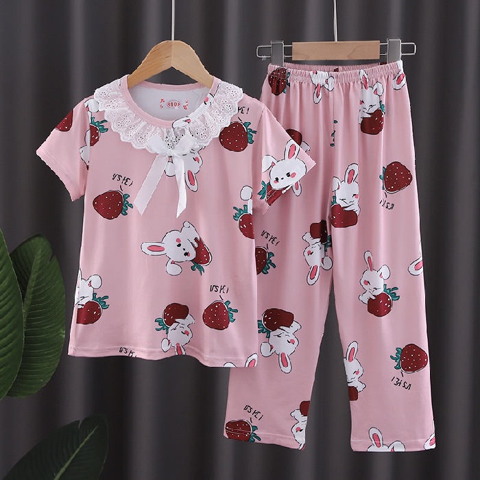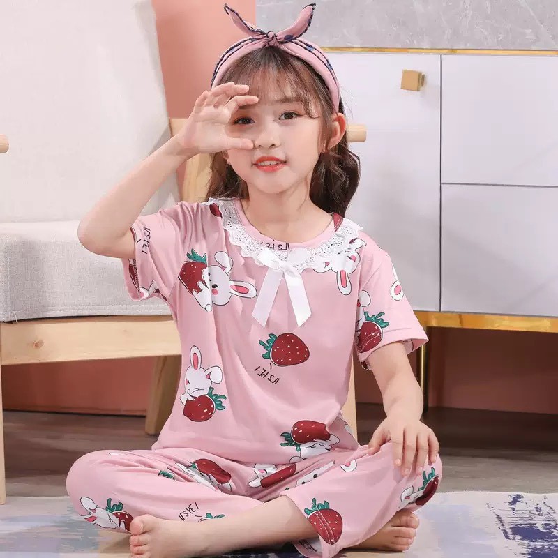ลด10% โค้ด DDXDECW4 ชุดนอนเด็กผู้หญิงแขนสั้นขายาวลายการ์ตูนแบบน่ารักพร้อมหมวก100cm-140cm นื้อผ้าลื่นใส่สบาย