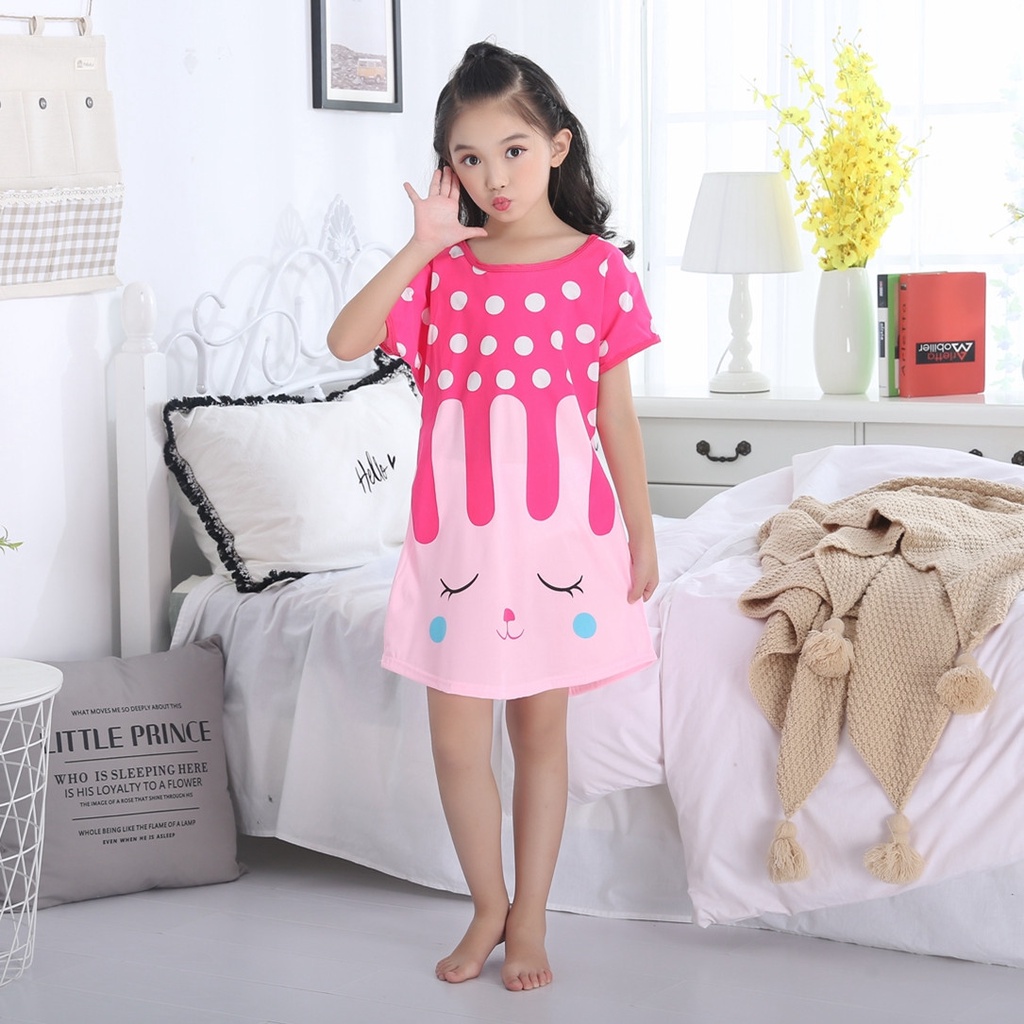 ลด10% โค้ด DDXDECW4 Lukkids Shop ชุดนอนเด็กผู้หญิงลายการ์ตูนทรงกระโปรงพร้อมส่ง95cm-135cm นื้อผ้าลื่นใส่สบาย