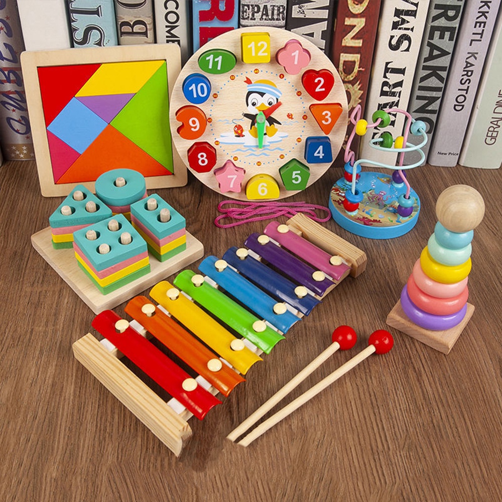 ของเล่น ไม้เสริมพัฒนาการ บล๊อคไม้เลขาคณิต ของเล่นไม้ เสริมพัฒนาการ ตัวต่อรูปทรง ห่วงไม้สีรุ้งสวมหลัก