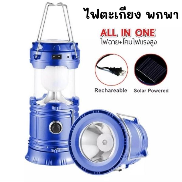 ไฟตะเกียง LED ไฟตะเกียงแคมปิ้ง ตะเกียงโซล่า+ไฟฉาย โคมไฟ LED อเนกประสงค์ ชาร์จไฟได้ มีUSB พลังงานแสงอาทิตย์ ไฟตกแต่ง