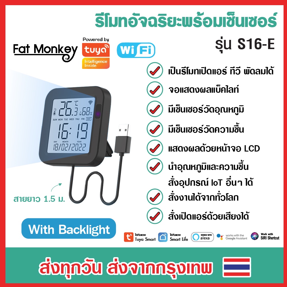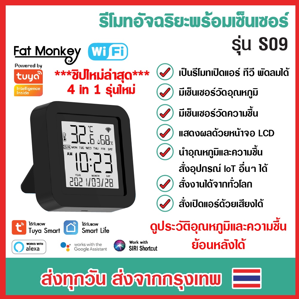 Tuya 4 in 1 WiFi IR Remote Temp and Humi Sensor มีจอ LCD รุ่น S09 S16-E S15 Pro S19 รีโมทอัจฉริยะ