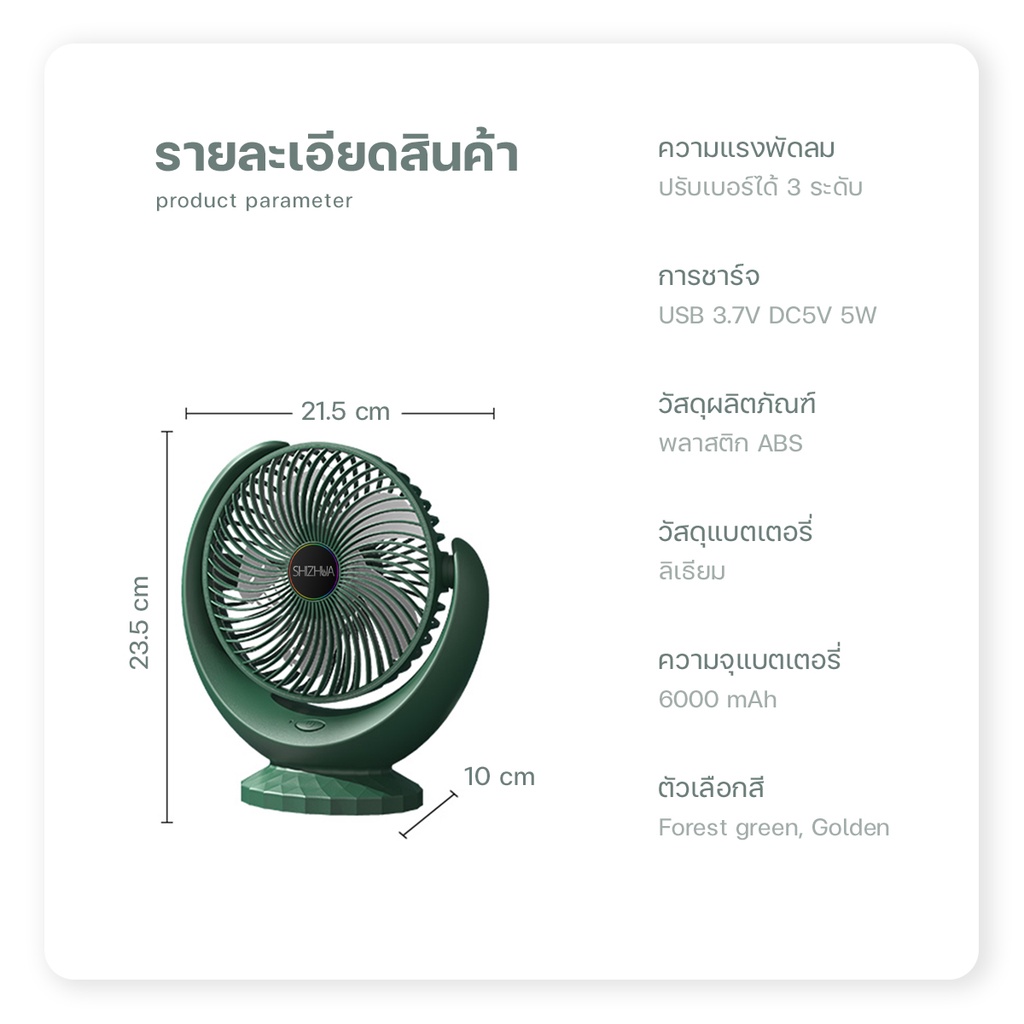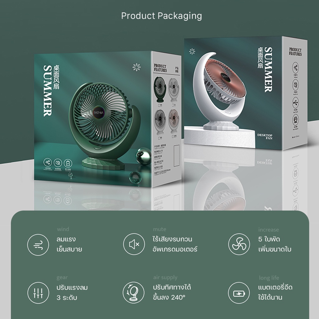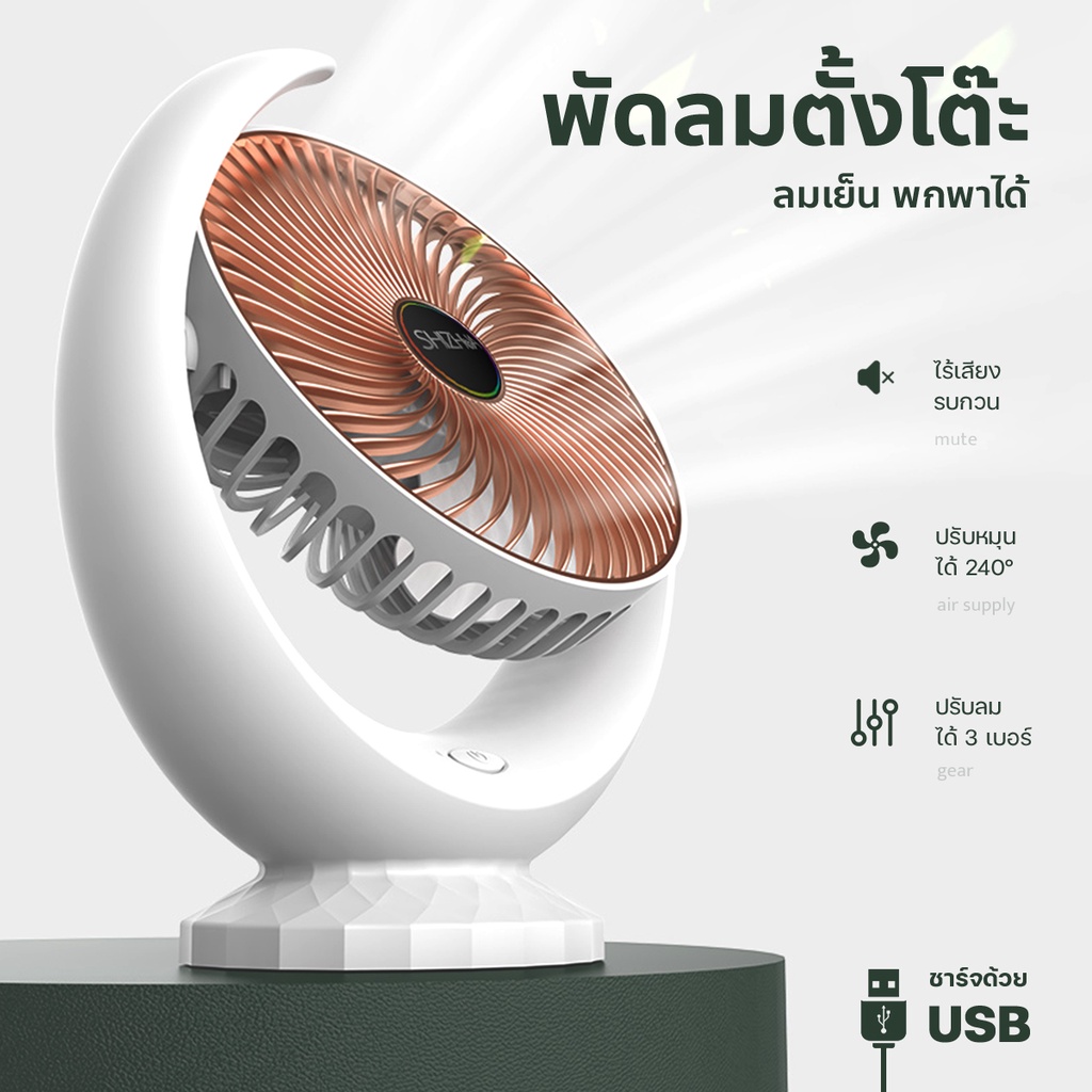 พัดลมตั้งโต๊ะ พัดลมพกพา พัดลมชาจเก็บไฟ ปรับความแรงลมได้3ระดับ แบบพกพาแบบusb