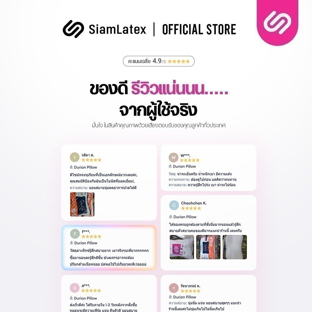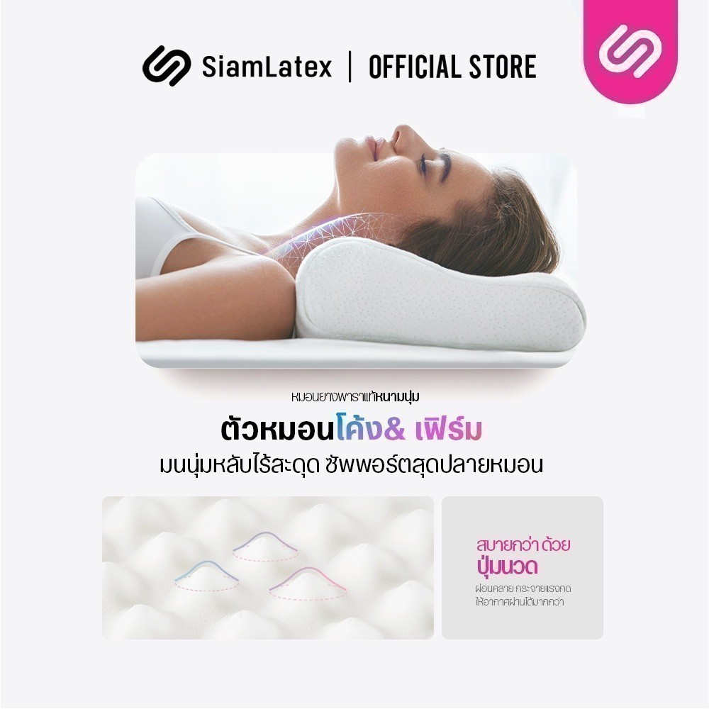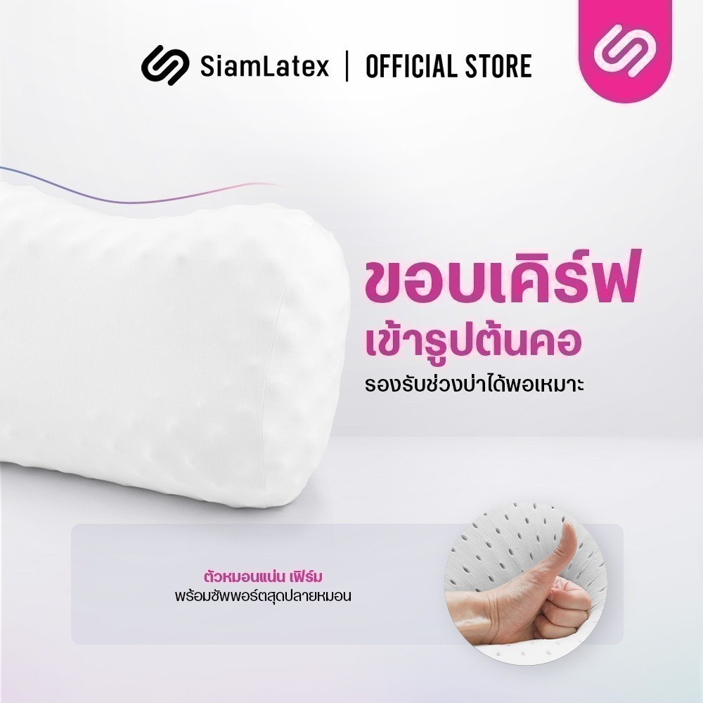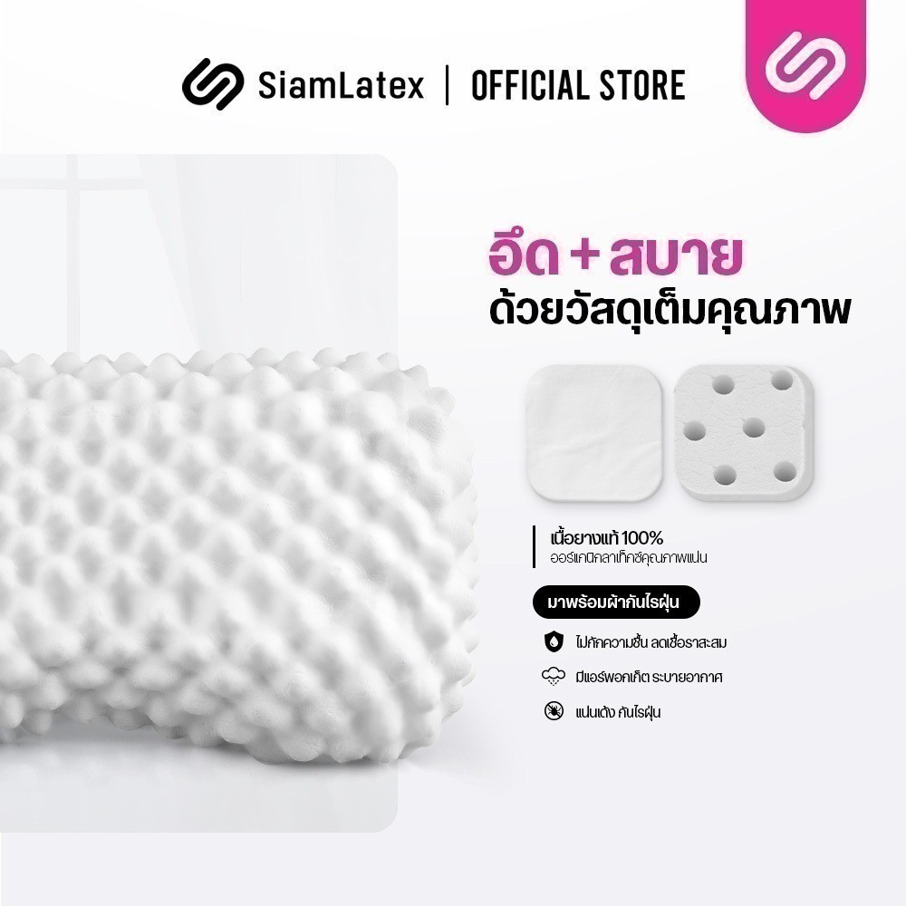[ซื้อ 1 แถม 1] SiamLatex Durian หมอนยางพารา ทรงทุเรียน แก้ปวดคอ กันไรฝุ่น ระบายอากาศดีเยี่ยม