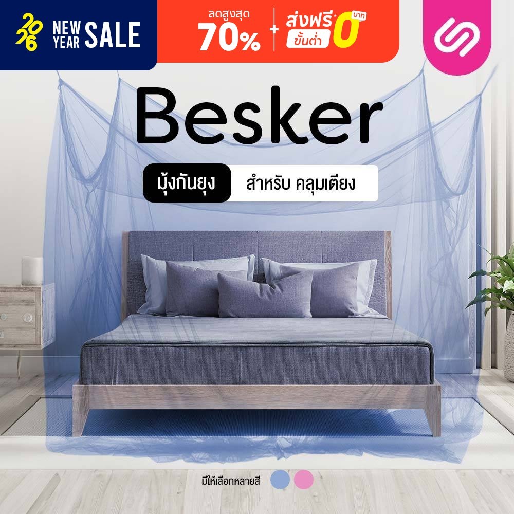 SiamLatex มุ้งกันยุง Besker มีสายผูกทั้ง 4 มุม ผ้าตา ข่ายโพลีเอสเตอร์ มุ้งกันยุง ช่วยป้องกันเเมลง ยุง