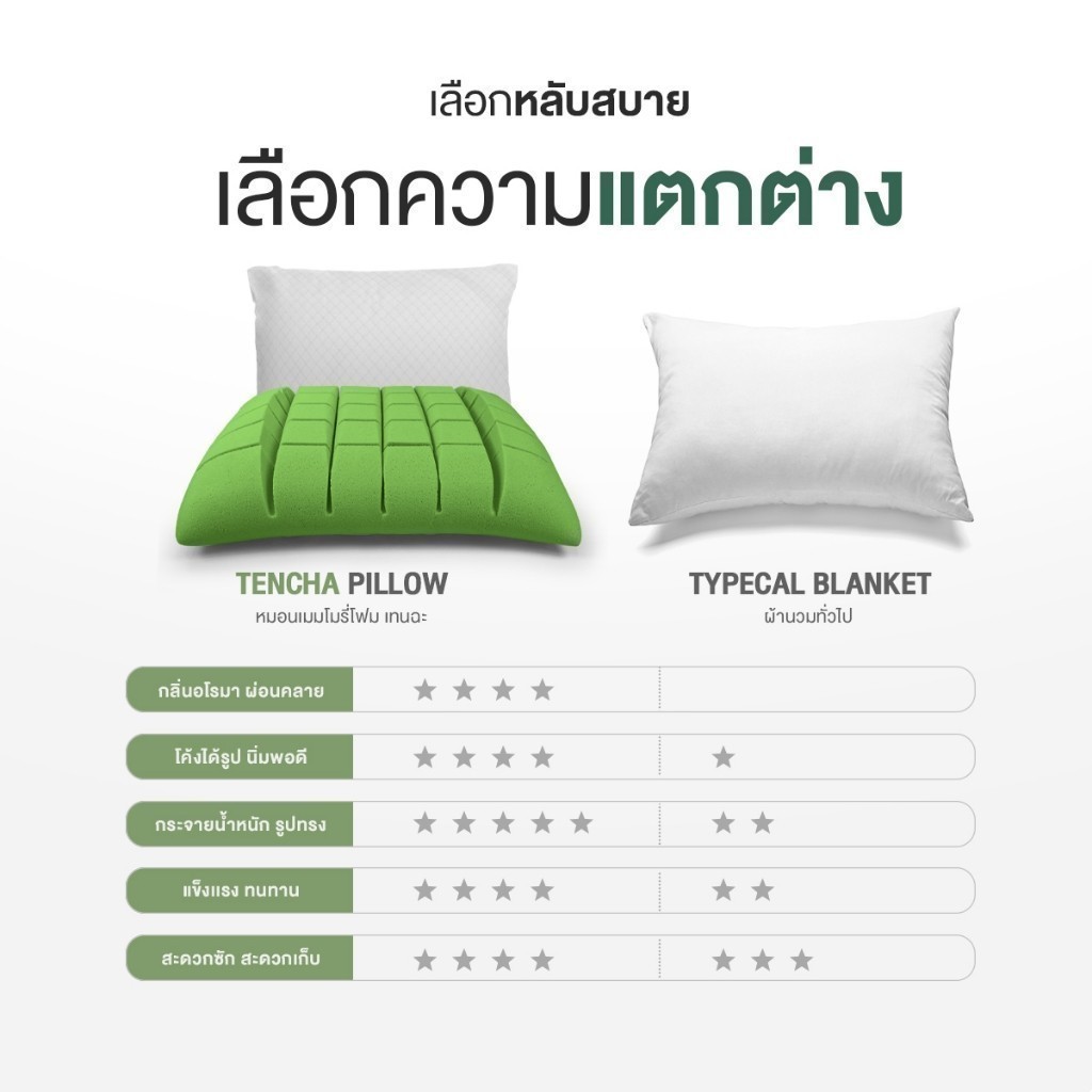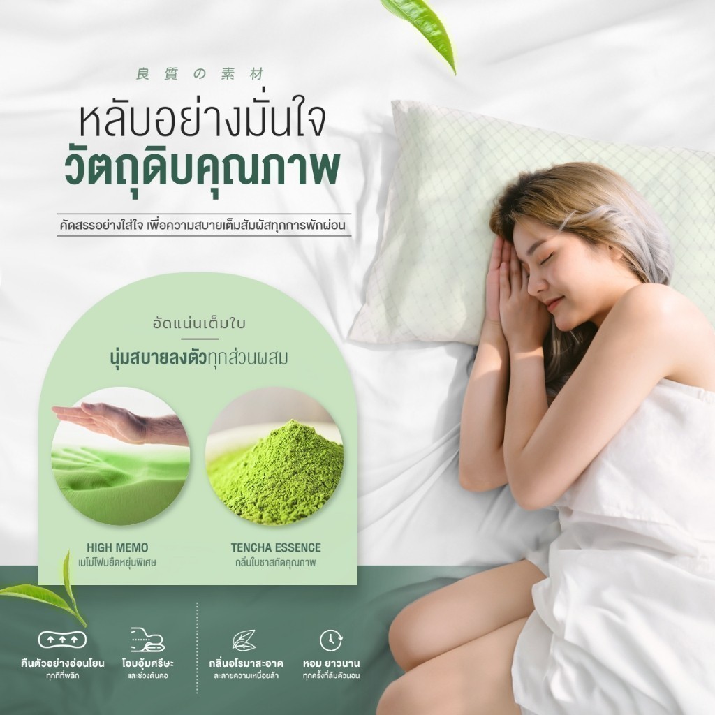 Orientas หมอนเต๋าสลบเหมือด Tencha เมมโมรี่โฟม หมอนสุขภาพ มัจฉะชาเขียว หลับง่าย หลับสนิท ลดปวดลดกรน