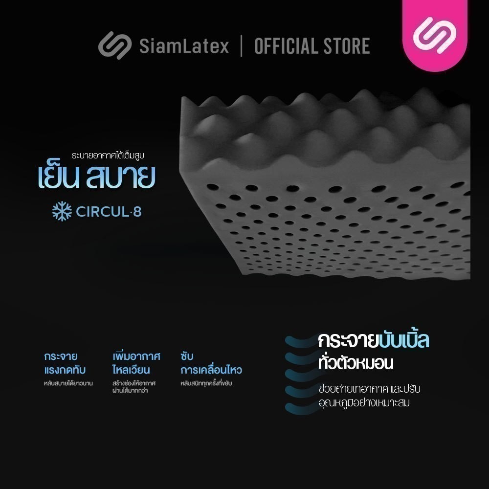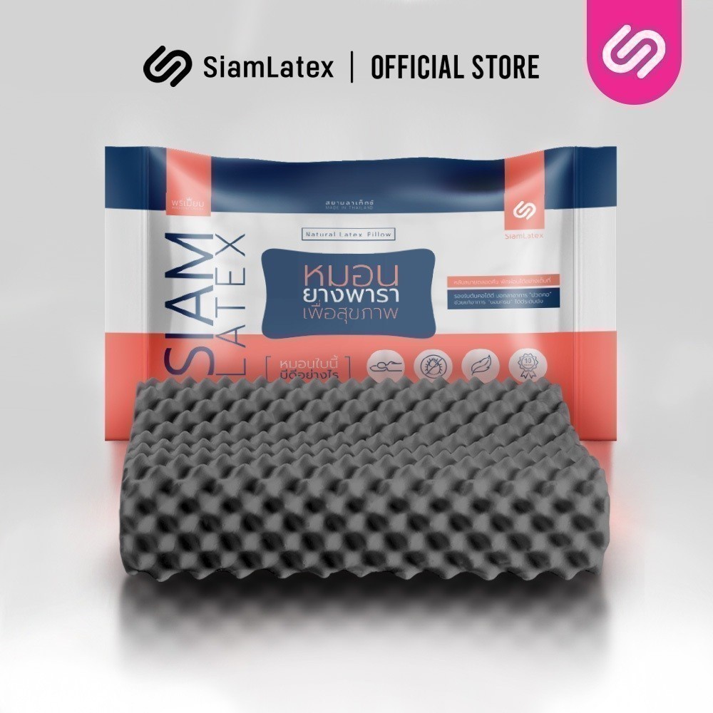 SiamLatex Double Slopes Black Charcoal หมอนยางพารา ผสม ผงถ่านไม้ไผ่ หมอนเพื่อสุขภาพ แก้ปวดคอ