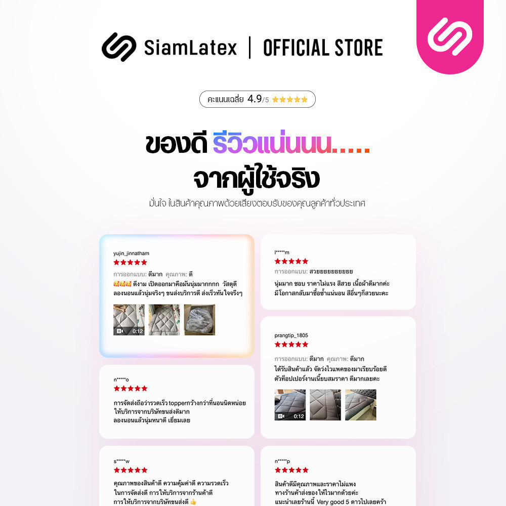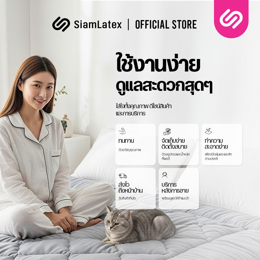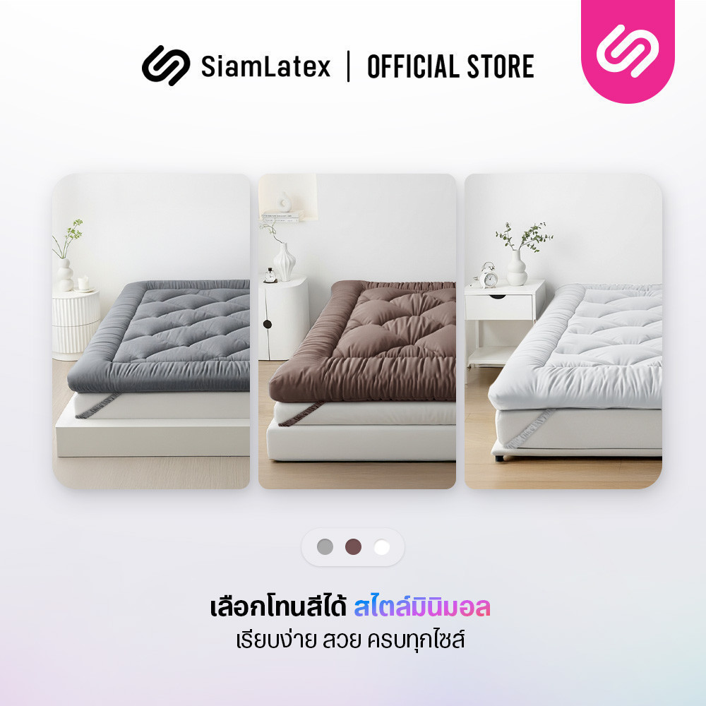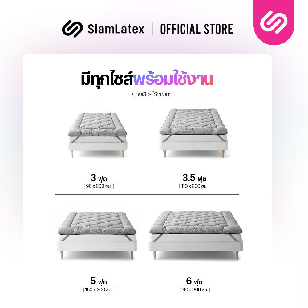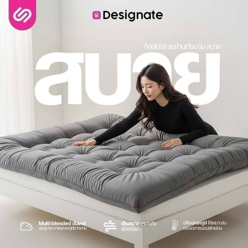 SiamLatex Designate ท็อปเปอร์ ใยขนเป็ดเทียม หนา 4 นิ้ว (ขนาด 3.5/5/6 ฟุต) นุ่ม ฟู สายรัด 4 มุม